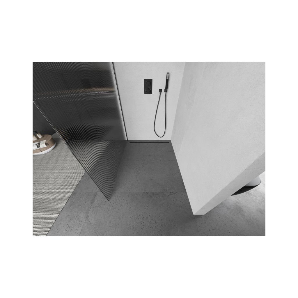 Mexen Kioto L, sprchová zástena Walk-In 100 x 200 cm, 8mm sklo s rebrovým vzorom, grafitový profil, 800-100-103-95-09