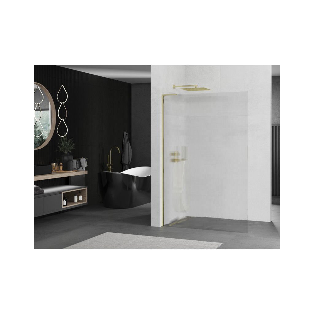 Mexen Kioto L, sprchová zástena Walk-In 100 x 200 cm, 8mm sklo s rebrovým vzorom, zlatý lesklý profil,800-100-103-50-09