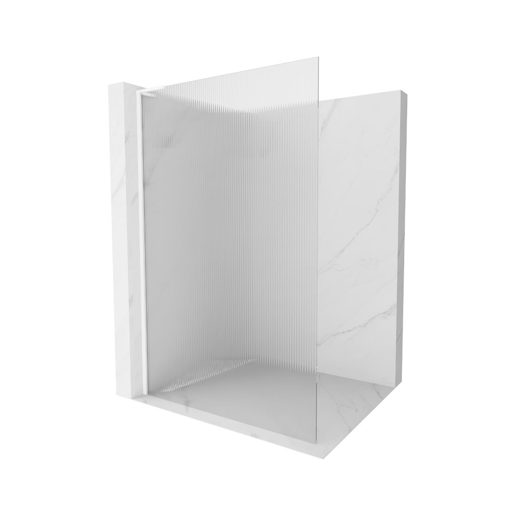 Mexen Kioto L, sprchová zástena Walk-In 120 x 200 cm, 8mm sklo s rebrovým vzorom, biely profil, 800-120-103-20-09