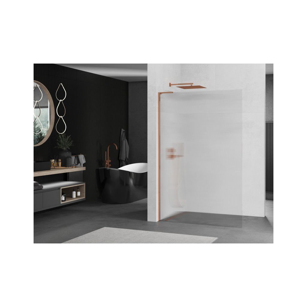 Mexen Kioto L, sprchová zástena Walk-In 120 x 200 cm, 8mm sklo s rebrovým vzorom, ružové zlato profil, 800-120-103-60-09