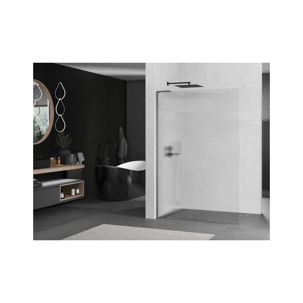 Mexen Kioto L, sprchová zástena Walk-In 70 x 200 cm, 8mm sklo s rebrovým vzorom, grafitový profil, 800-070-103-66-09