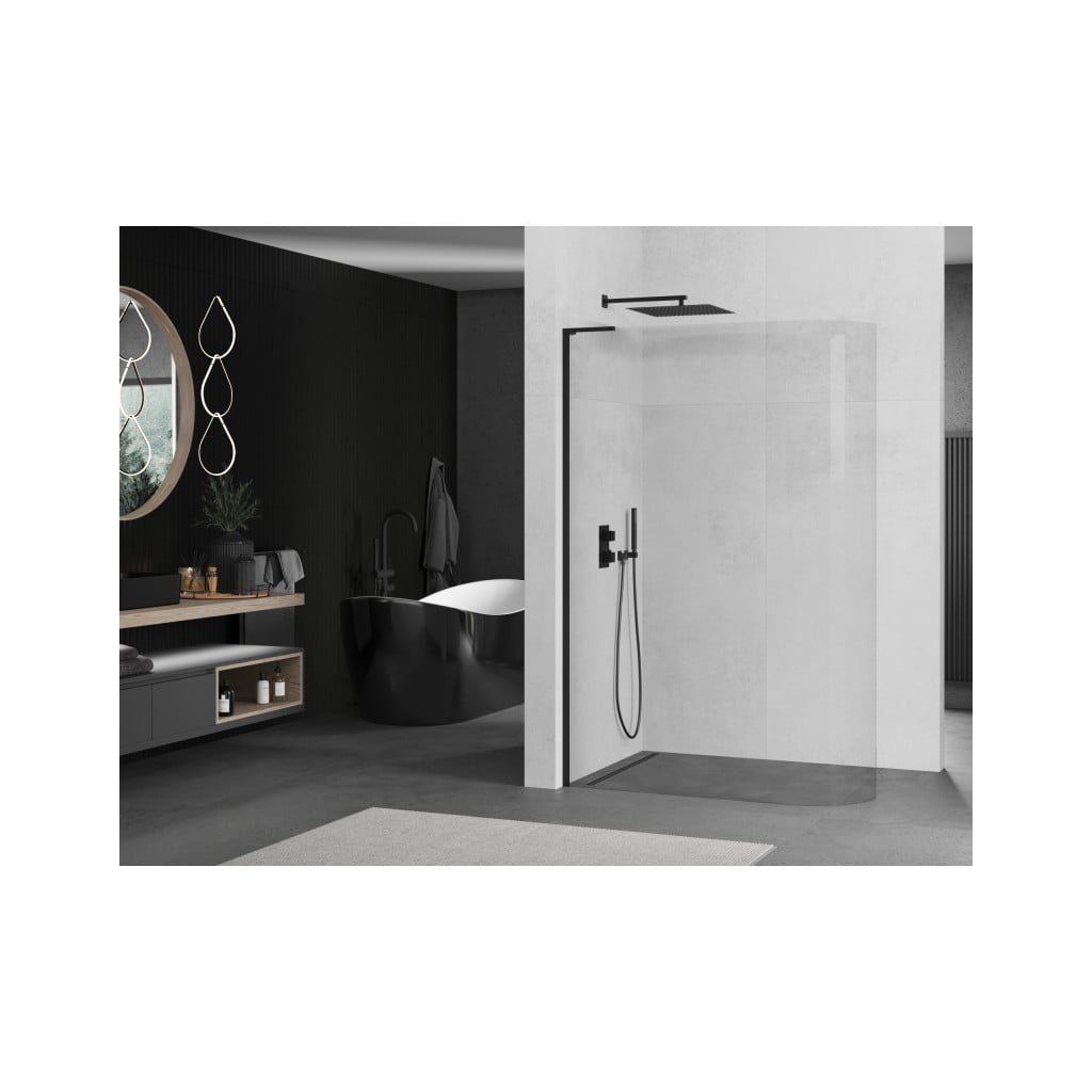 Mexen Kioto L, sprchová zástena Walk-In 80 x 200 cm, 8mm číre sklo, čierny profil, 800-080-103-70-06