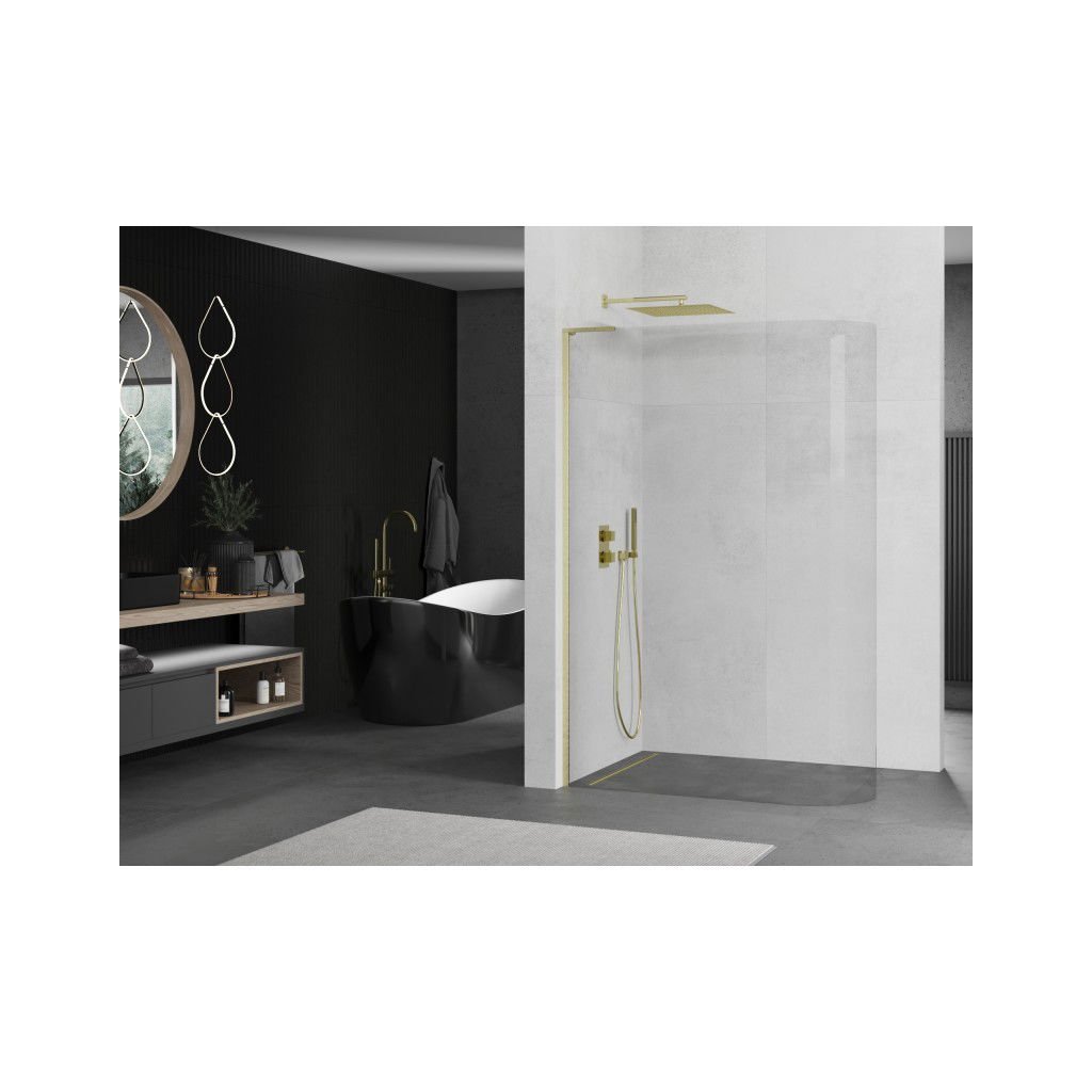 Mexen Kioto L, sprchová zástena Walk-In 80 x 200 cm, 8mm číre sklo, zlatý matný profil, 800-080-103-55-06