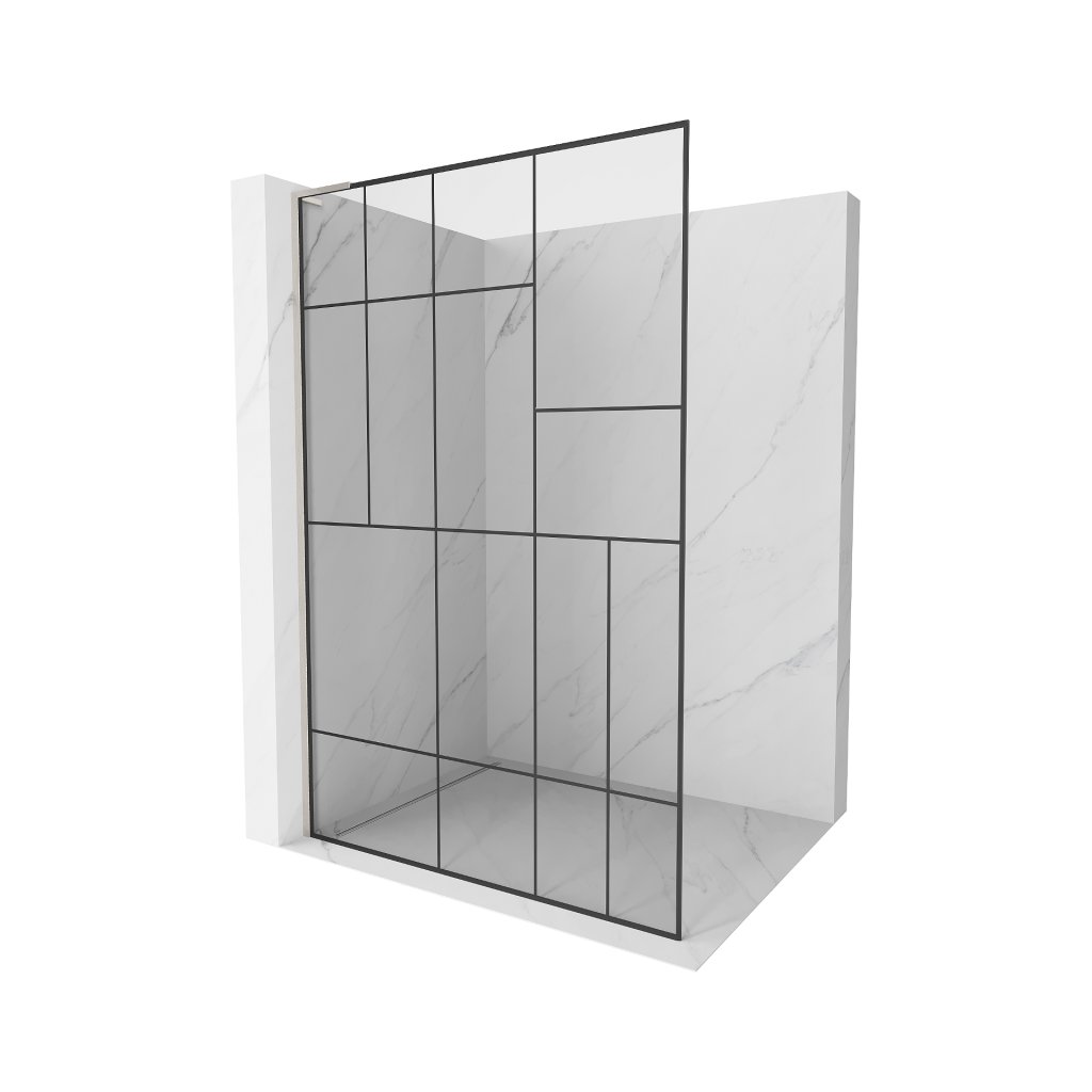 Mexen Kioto L, sprchová zástena Walk-In 80 x 200 cm, 8mm číre sklo čierny vzor, brúsená oceľ profil, 800-080-103-97-78
