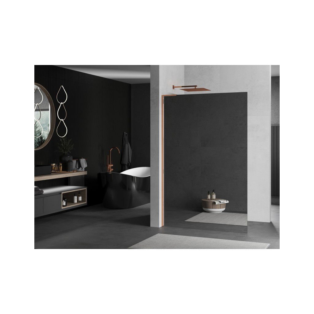 Mexen Kioto L, sprchová zástena Walk-In 80 x 200 cm, 8mm sklo vzor zrkadlo, ružové zlato profil, 800-080-103-60-50
