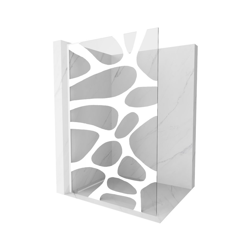 Mexen Kioto L, sprchová zástena Walk-In 90 x 200 cm, 8mm číre sklo biely vzor, biely profil, 800-090-103-20-97