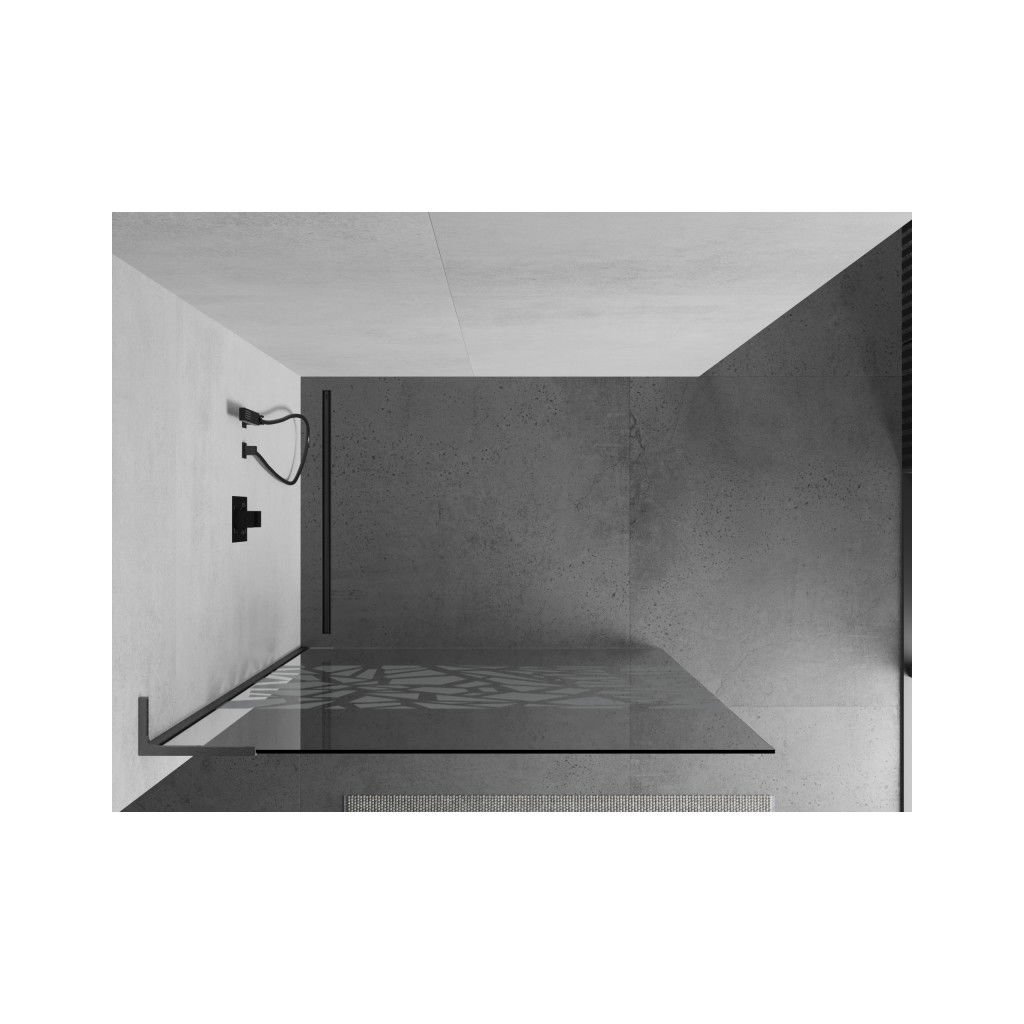 Mexen Kioto L, sprchová zástena Walk-In 90 x 200 cm, 8mm číre sklo biely vzor, grafitový profil, 800-090-103-66-85