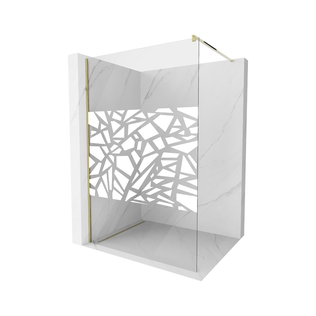 Mexen Kioto sprchová zástena 120x200 cm 8 mm, zlatý profil, biely vzor, 800-120-101-50-85