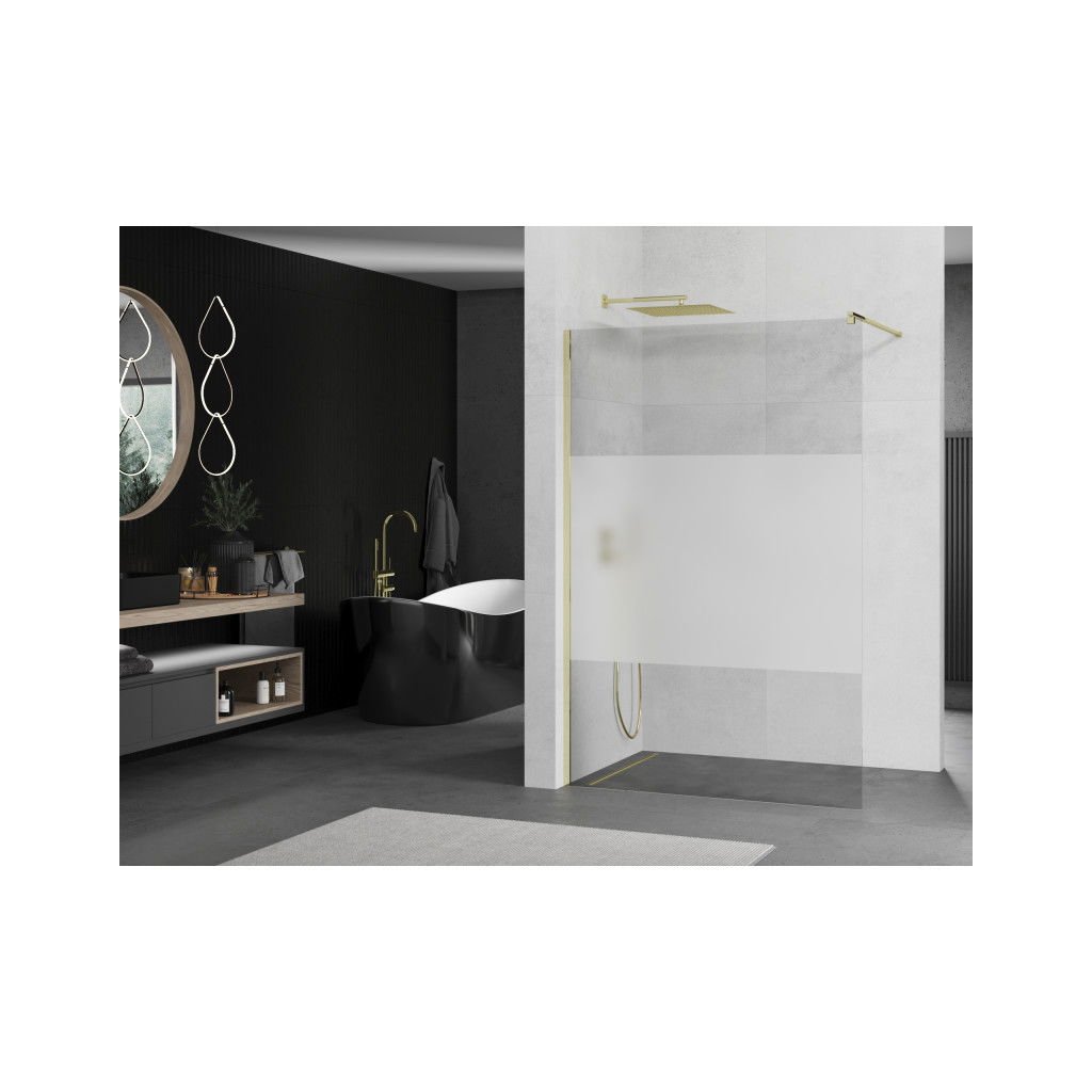Mexen Kioto sprchová zástena 120x200 cm 8 mm, zlatá, transparentná / mráz, 800-120-101-50-35