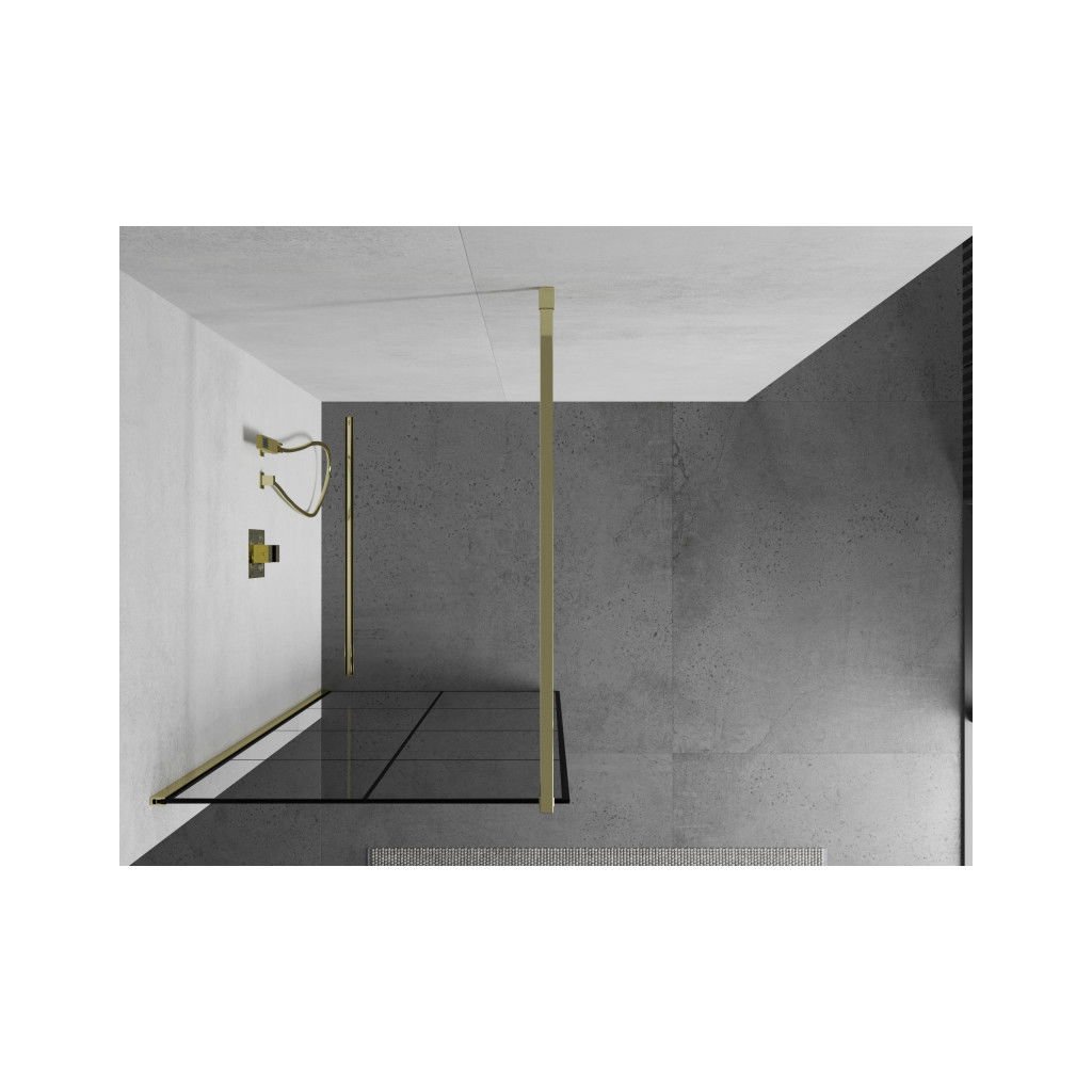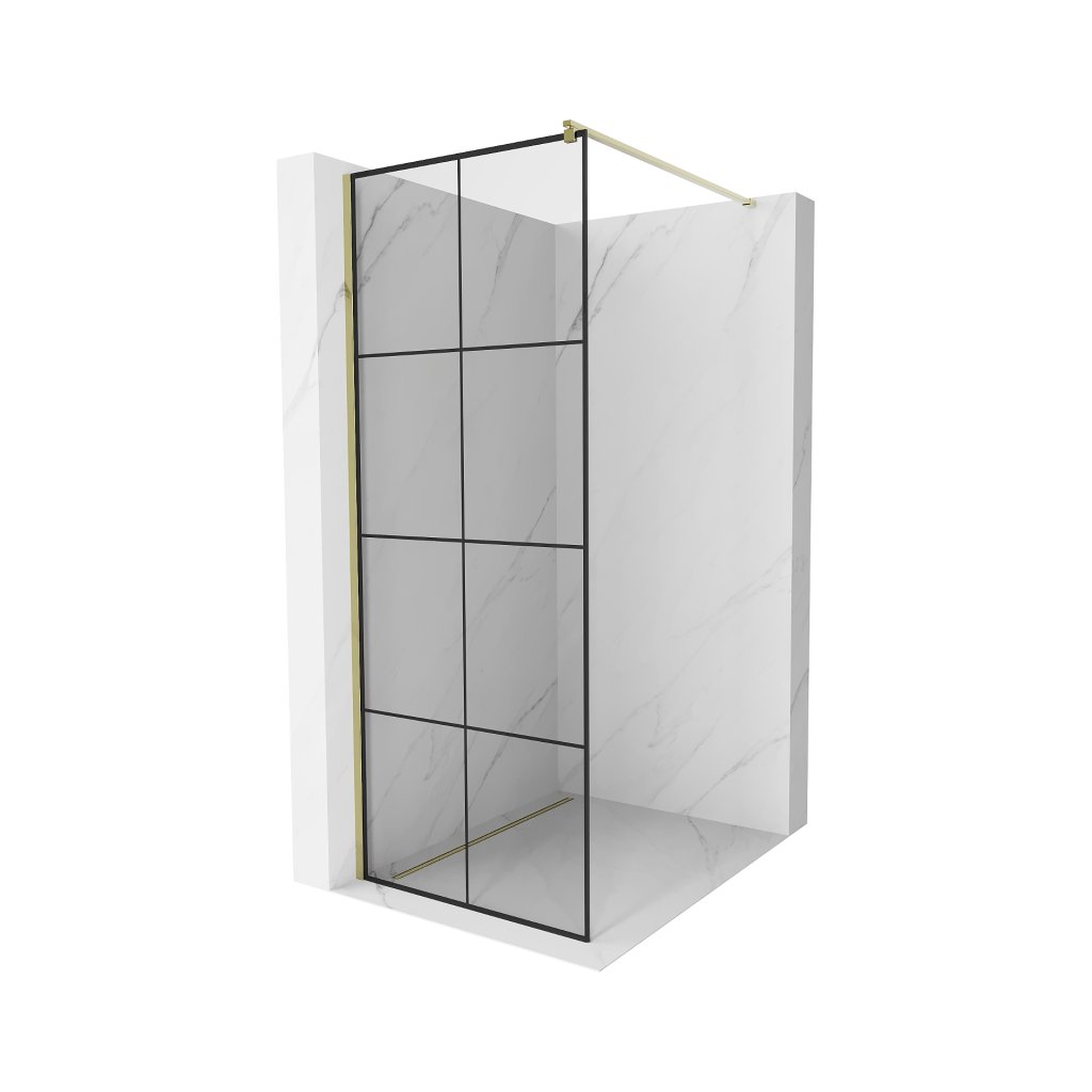 Mexen Kioto sprchová zástena 90x200 cm 8 mm, zlatý profil, sklo čierny vzor 1, 800-090-101-01-77