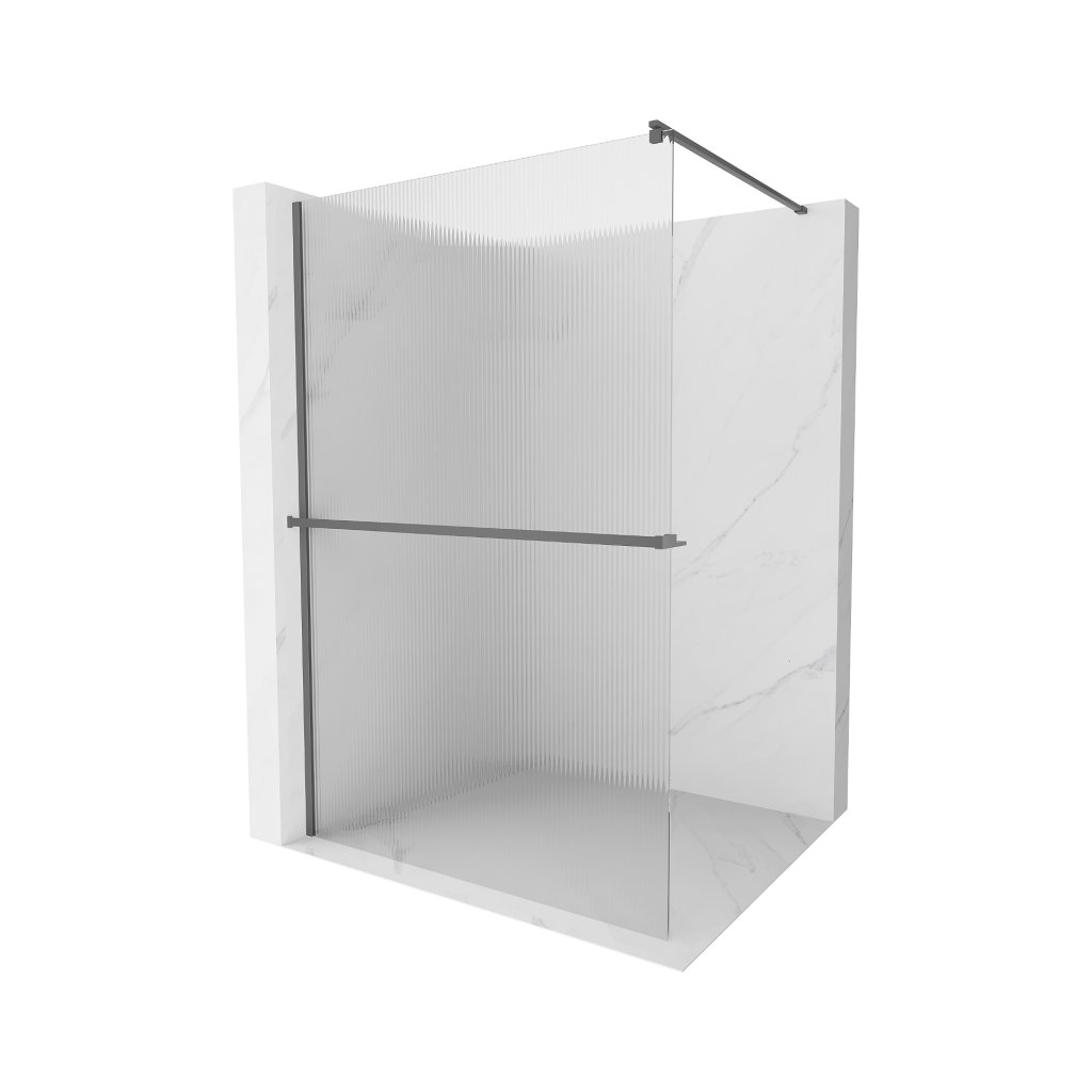Mexen Kioto+, sprchová zástena Walk-In s poličkou a vešiakom 110 x 200 cm, 8mm sklo s rebrovým vzorom, grafitový profil, 800-110-121-95-09