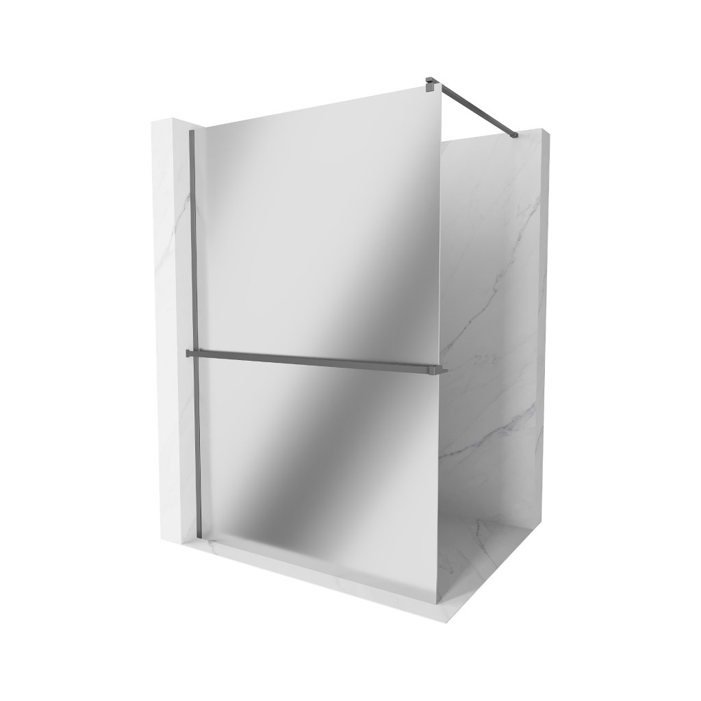 Mexen Kioto+, sprchová zástena Walk-In s poličkou a vešiakom 110 x 200 cm, 8mm sklo vzor zrkadlo, grafitový profil, 800-110-121-95-50