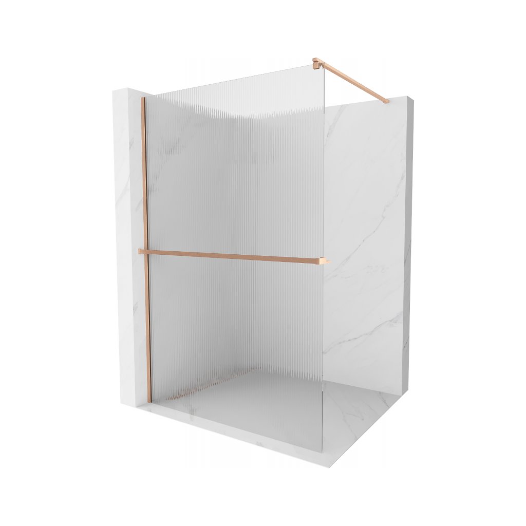 Mexen Kioto+, sprchová zástena Walk-In s poličkou a vešiakom 120 x 200 cm, 8mm sklo s rebrovým vzorom, medený matný profil, 800-120-121-65-09