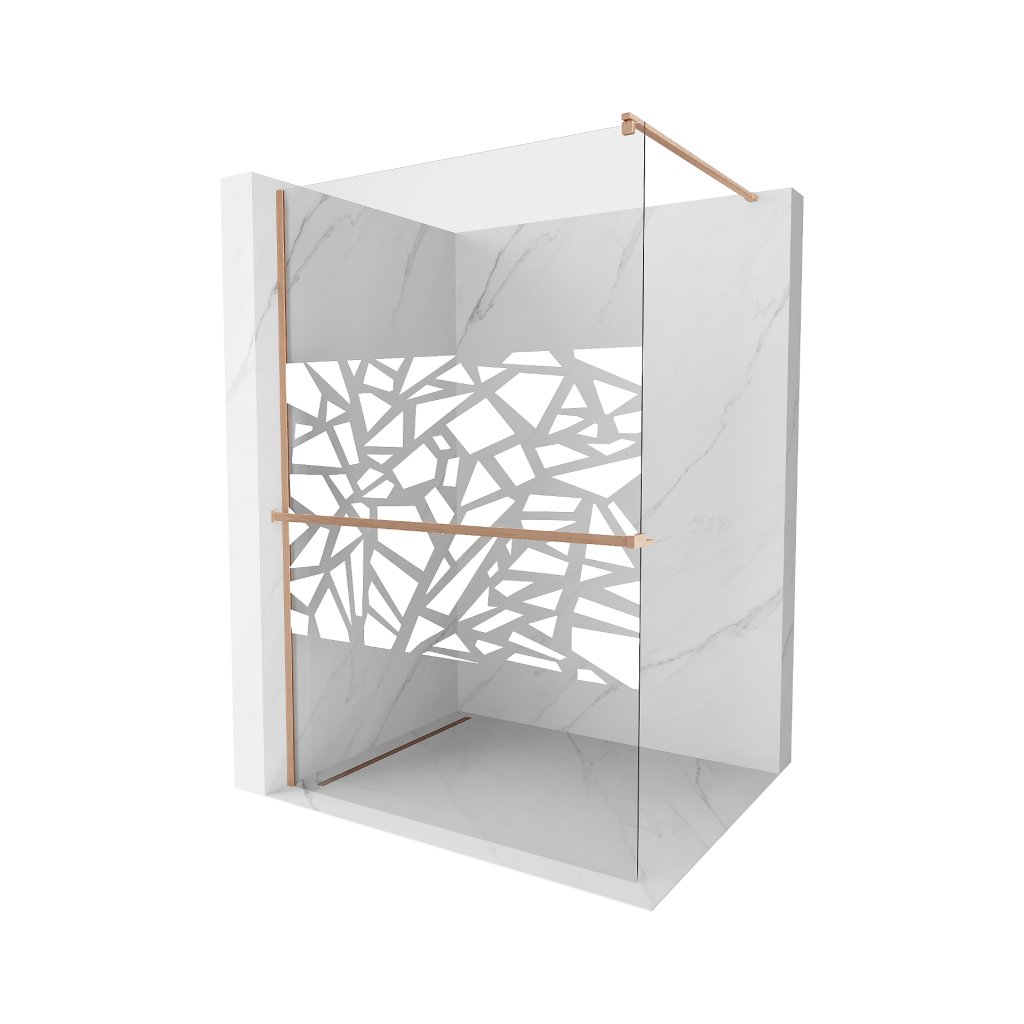 Mexen Kioto+, sprchová zástena Walk-In s poličkou a vešiakom 140 x 200 cm, 8mm číre sklo biely vzor, medený matný profil, 800-140-121-65-85