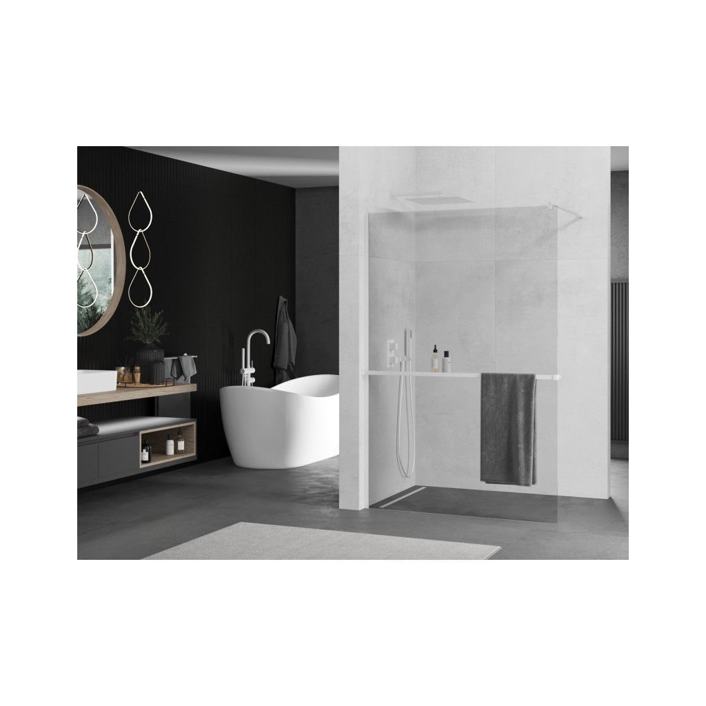 Mexen Kioto+, sprchová zástena Walk-In s poličkou a vešiakom 70 x 200 cm, 8mm číre sklo, biely profil, 800-070-121-20-00