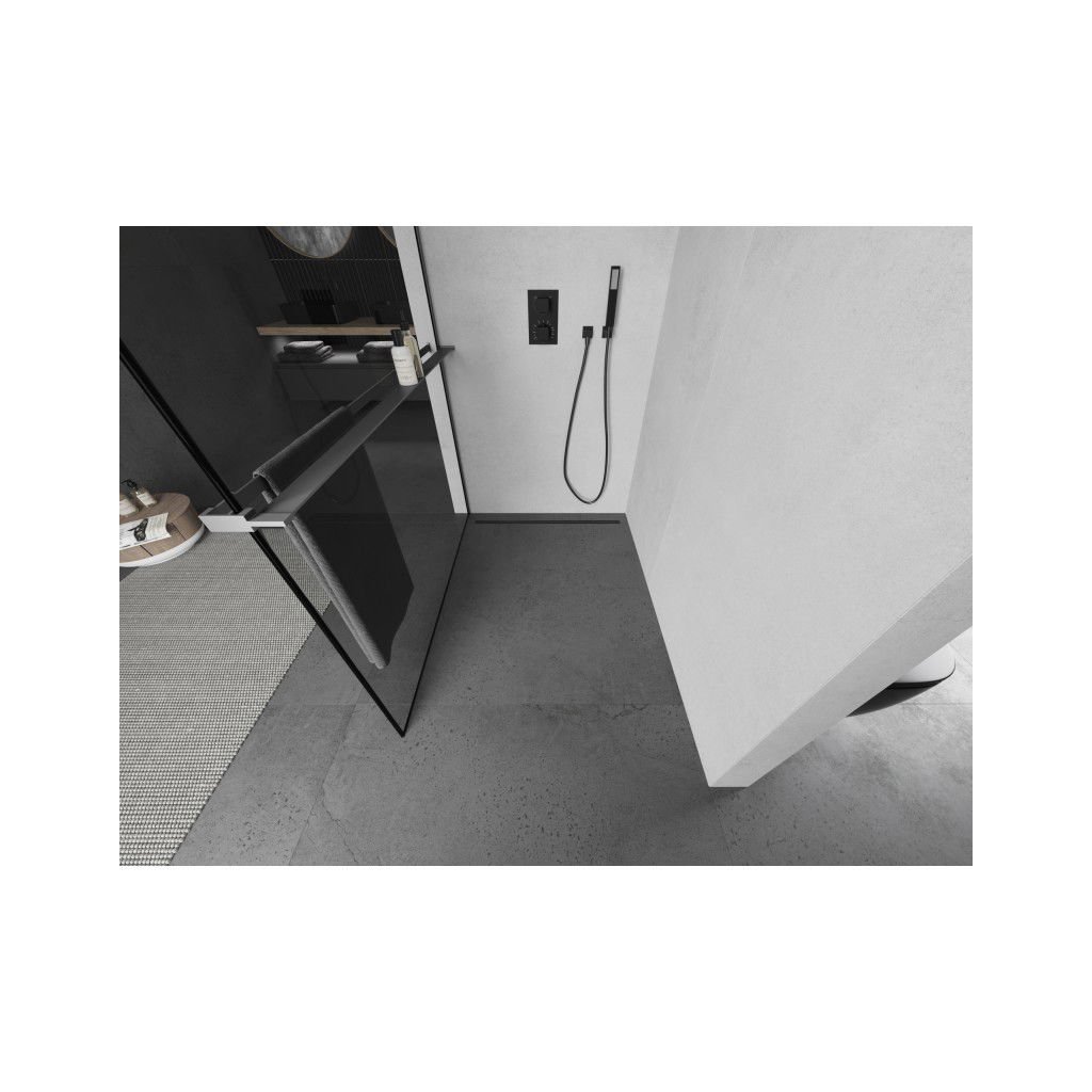 Mexen Kioto+, sprchová zástena Walk-In s poličkou a vešiakom 70 x 200 cm, 8mm číre sklo čierny vzor, grafitový profil, 800-070-121-95-70