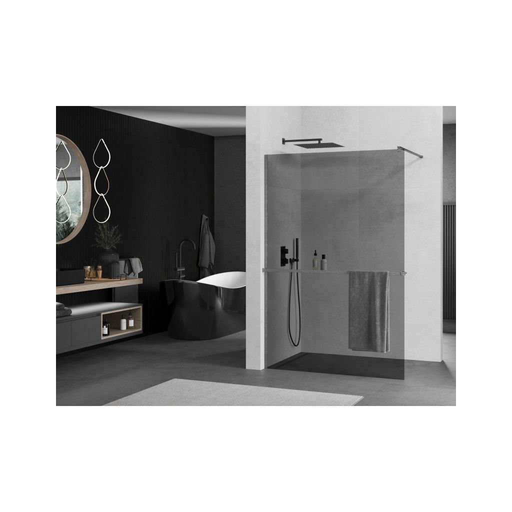 Mexen Kioto+, sprchová zástena Walk-In s poličkou a vešiakom 70 x 200 cm, 8mm šedé sklo, grafitový profil, 800-070-121-66-40