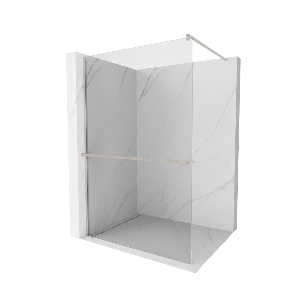 Mexen Kioto+, sprchová zástena Walk-In s poličkou a vešiakom 80 x 200 cm, 8mm číre sklo, brúsená oceľ profil, 800-080-121-97-00
