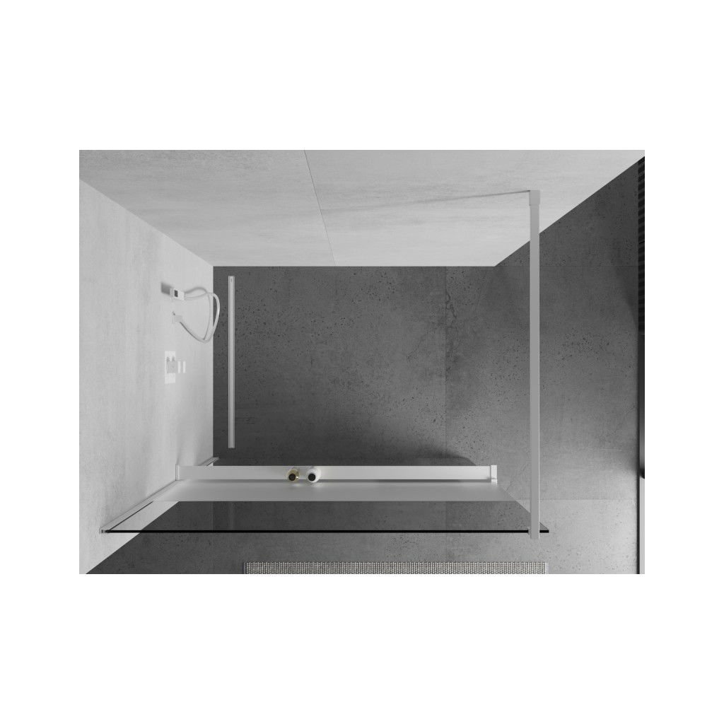 Mexen Kioto+, sprchová zástena Walk-In s poličkou a vešiakom 80 x 200 cm, 8mm číre sklo-námraza, biely profil, 800-080-121-20-35
