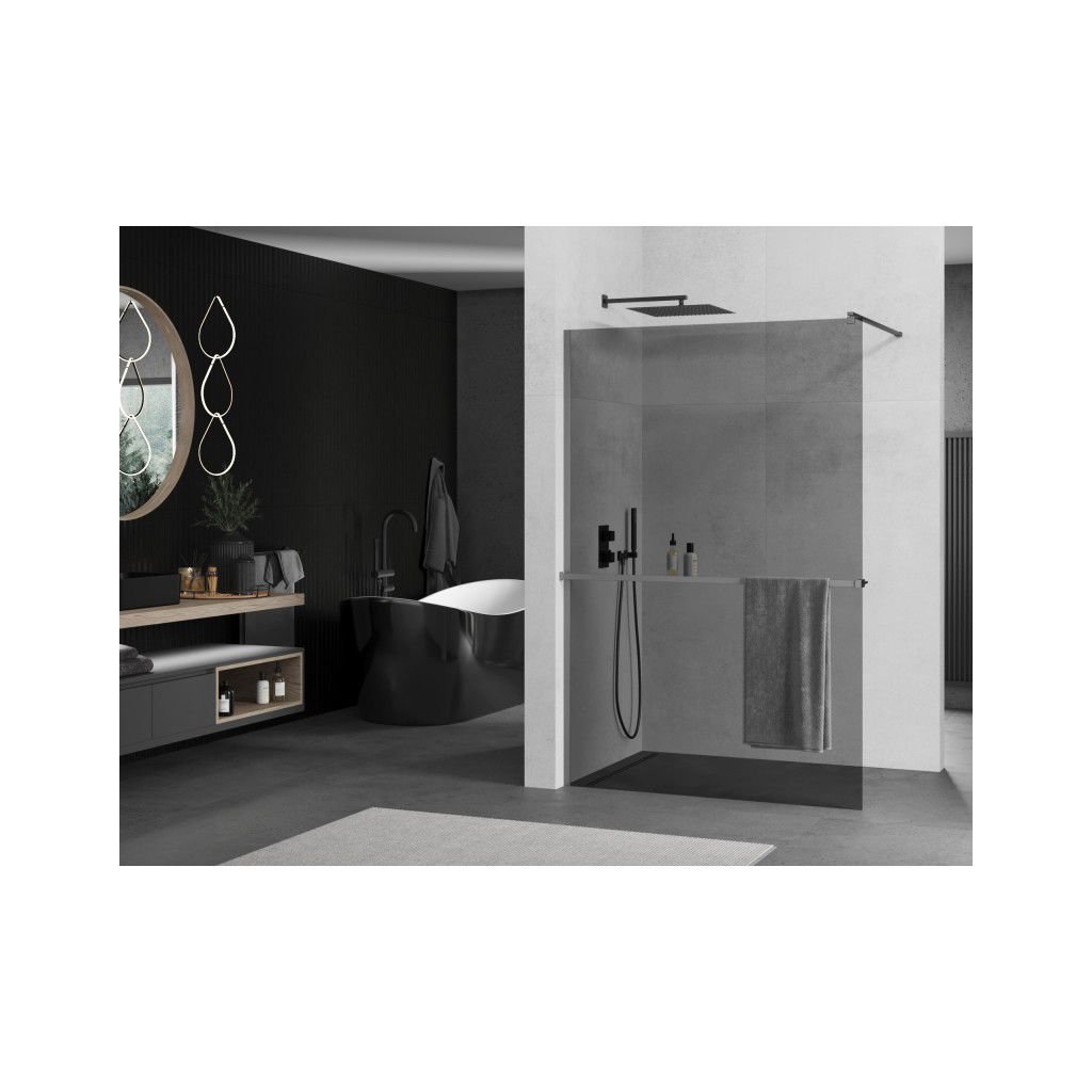 Mexen Kioto+, sprchová zástena Walk-In s poličkou a vešiakom 80 x 200 cm, 8mm šedé sklo, grafitový profil, 800-080-121-95-40