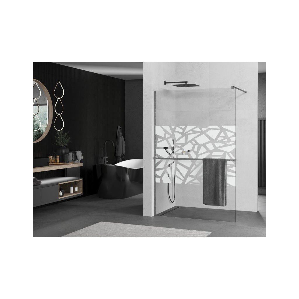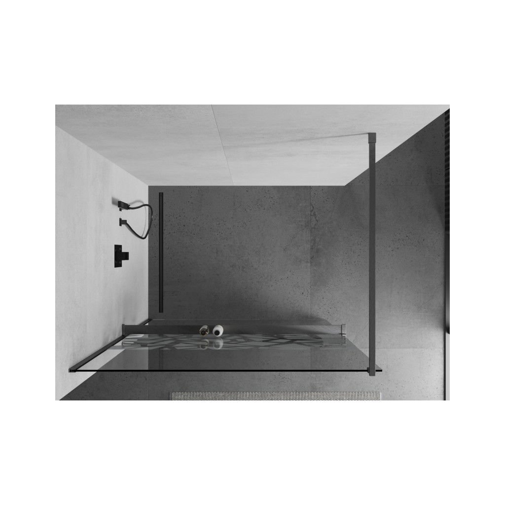 Mexen Kioto+, sprchová zástena Walk-In s poličkou a vešiakom 90 x 200 cm, 8mm číre sklo biely vzor, grafitový profil, 800-090-121-66-85