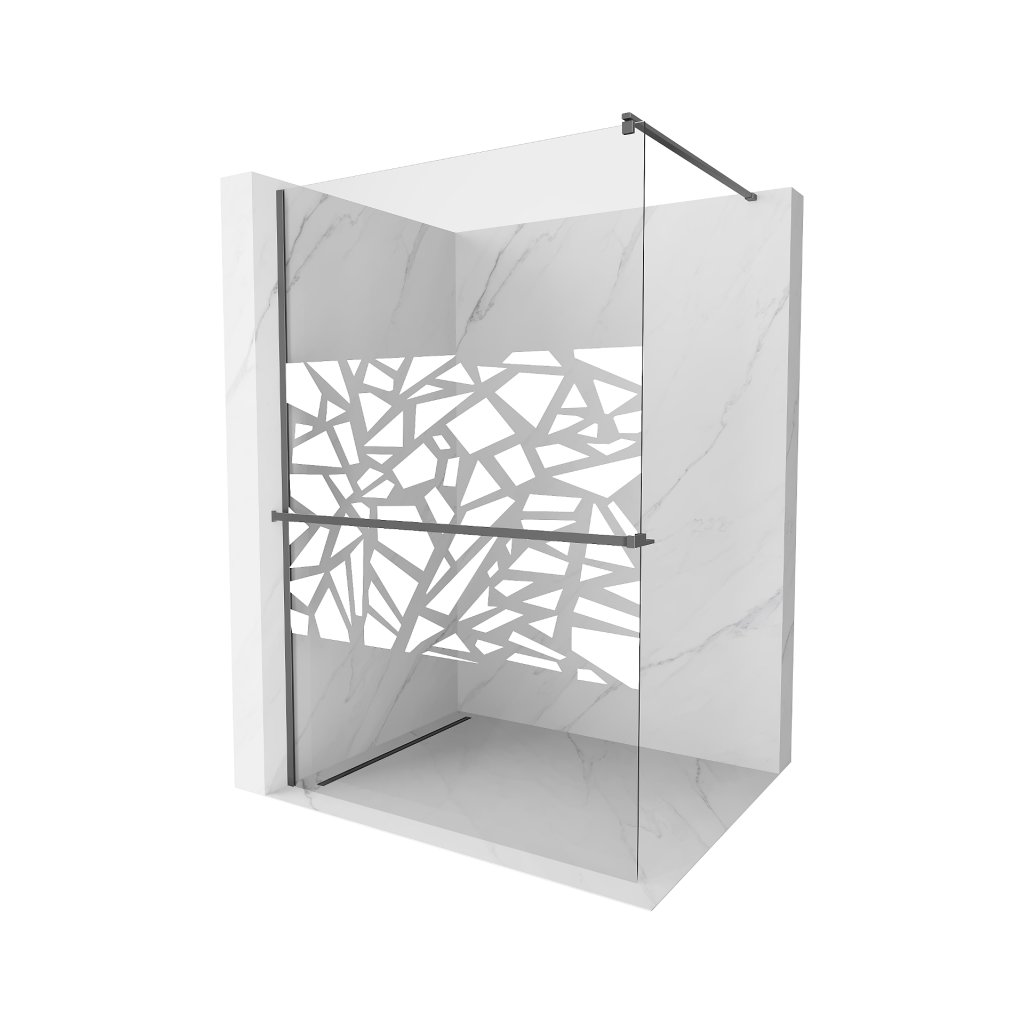 Mexen Kioto+, sprchová zástena Walk-In s poličkou a vešiakom 90 x 200 cm, 8mm číre sklo biely vzor, grafitový profil, 800-090-121-95-85