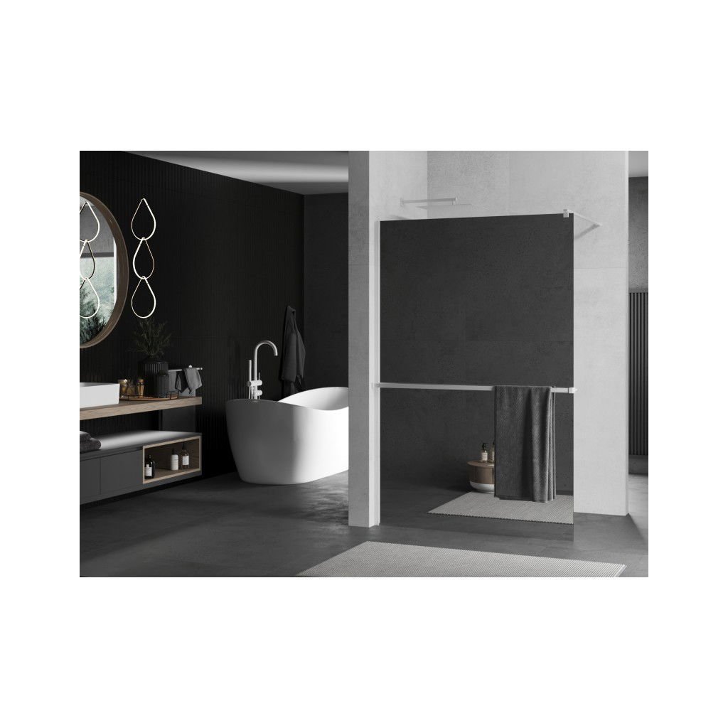 Mexen Kioto+, sprchová zástena Walk-In s poličkou a vešiakom 90 x 200 cm, 8mm sklo vzor zrkadlo, biely profil, 800-090-121-20-50