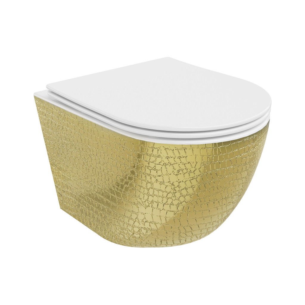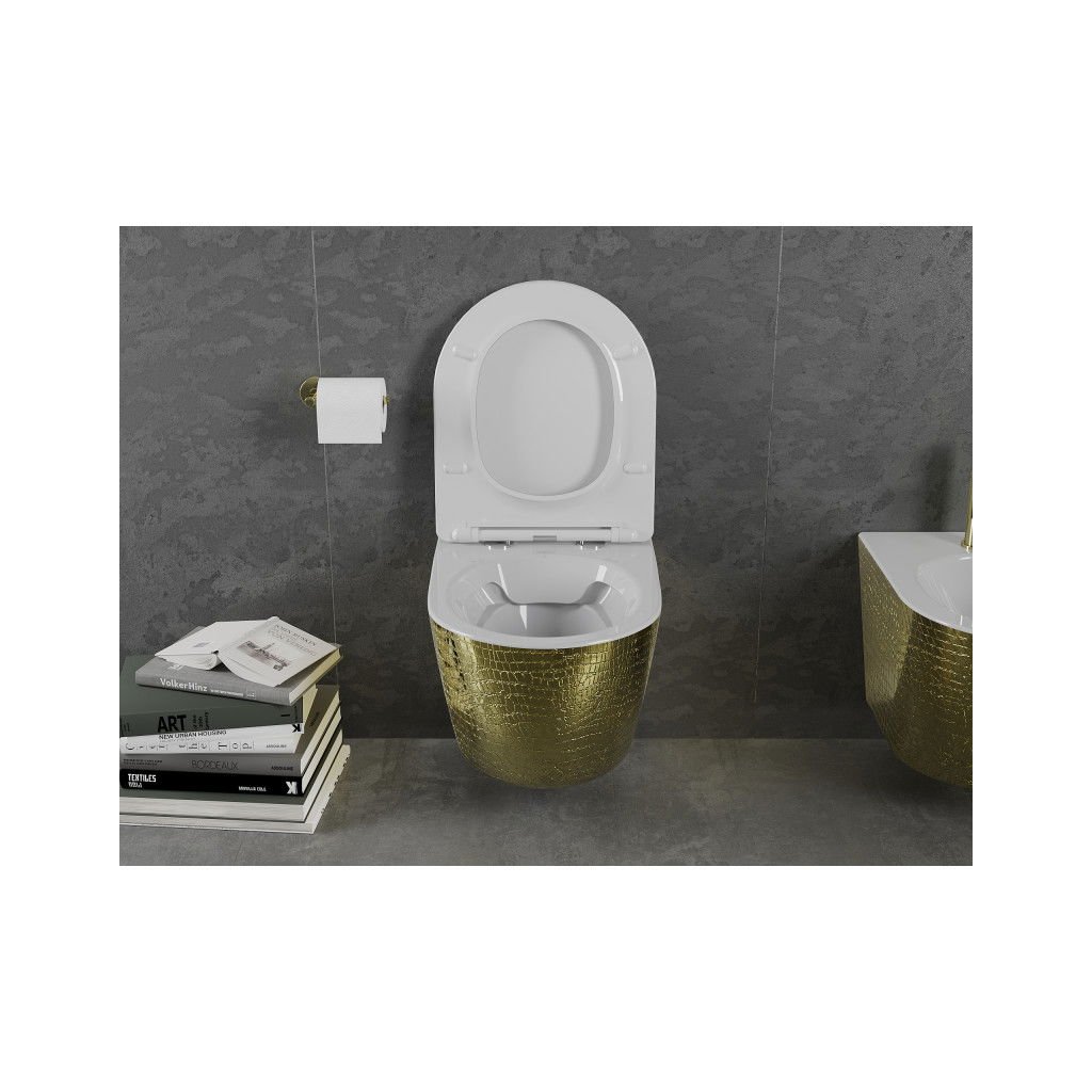 Mexen Lena, závesná toaletná misa 480x360x355 mm, biela - zlatý vzor, 30224008