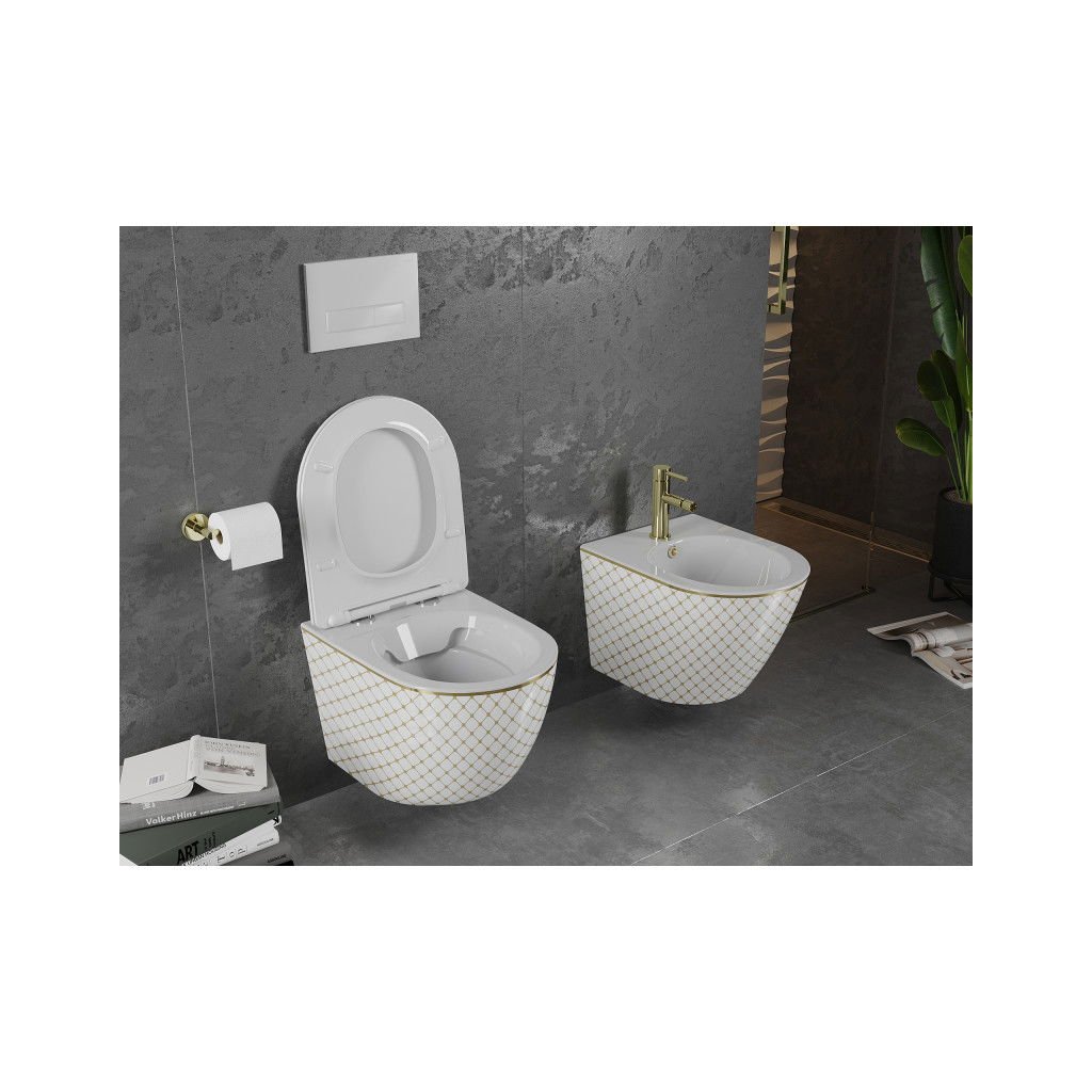 Mexen Lena, závesná toaletná misa 480x360x355 mm, biela - zlatý vzor, 30224009