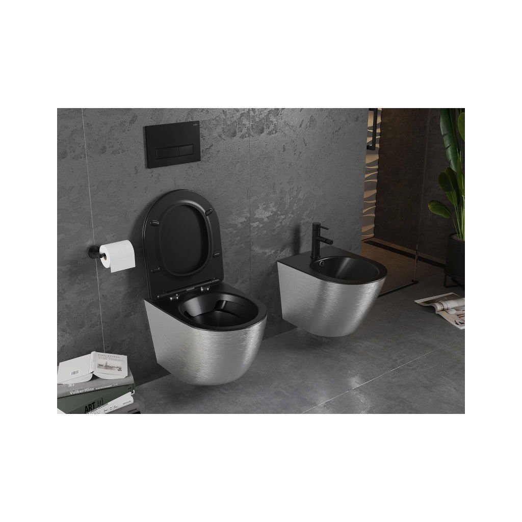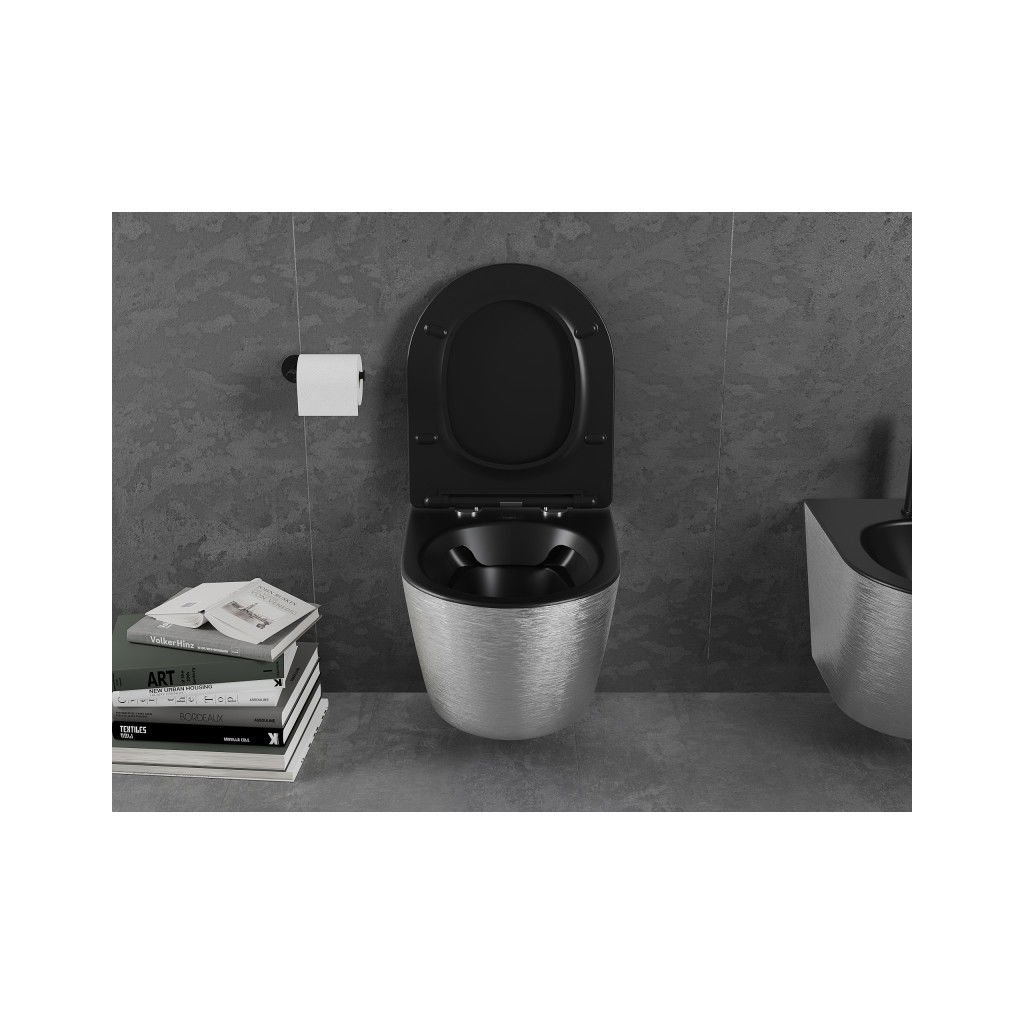 Mexen Lena, závesná toaletná misa 480x360x355 mm s pomaly padajúcim sedátkom, čierna matná - strieborná, 30224073