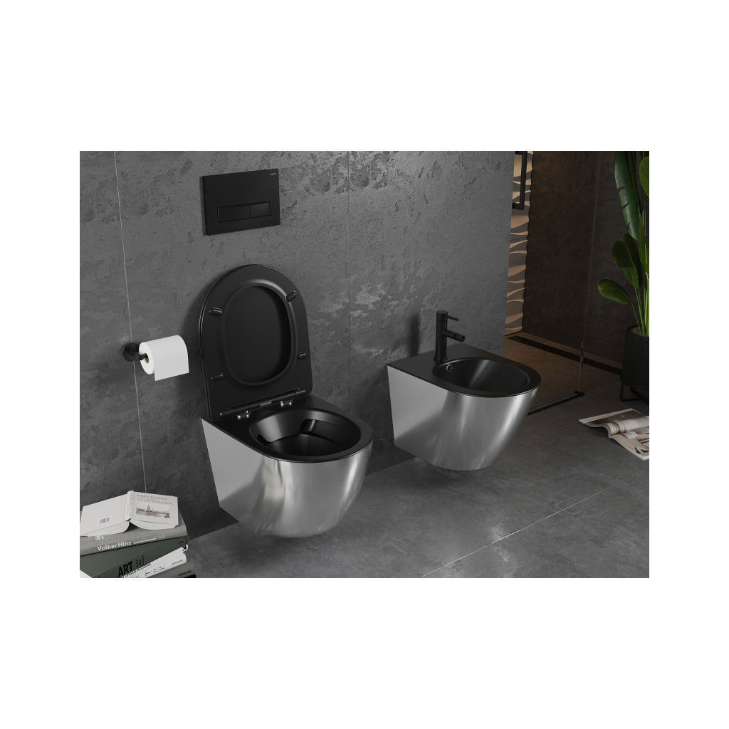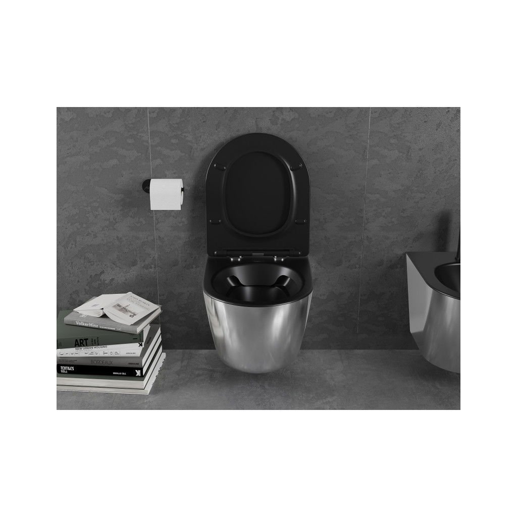 Mexen Lena, závesná toaletná misa 480x360x355 mm s pomaly padajúcim sedátkom, čierna matná - strieborná, 30224074