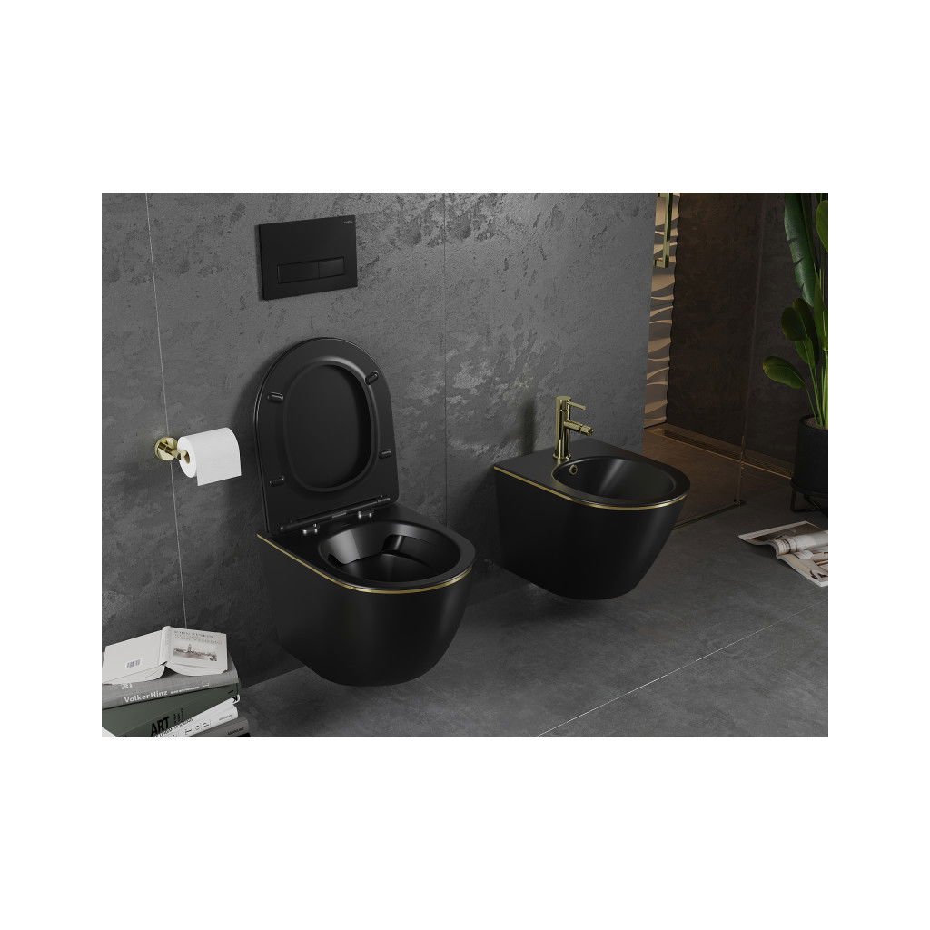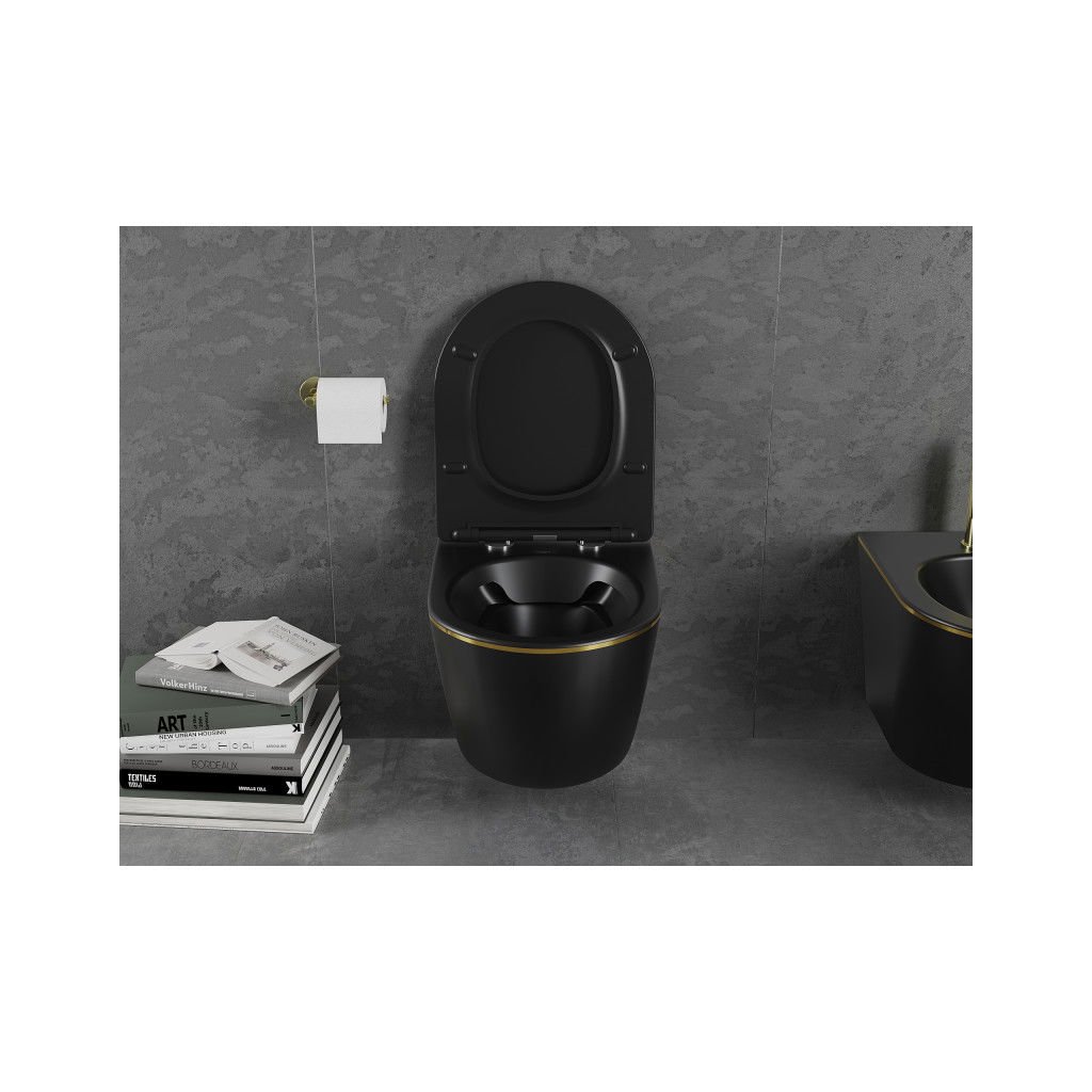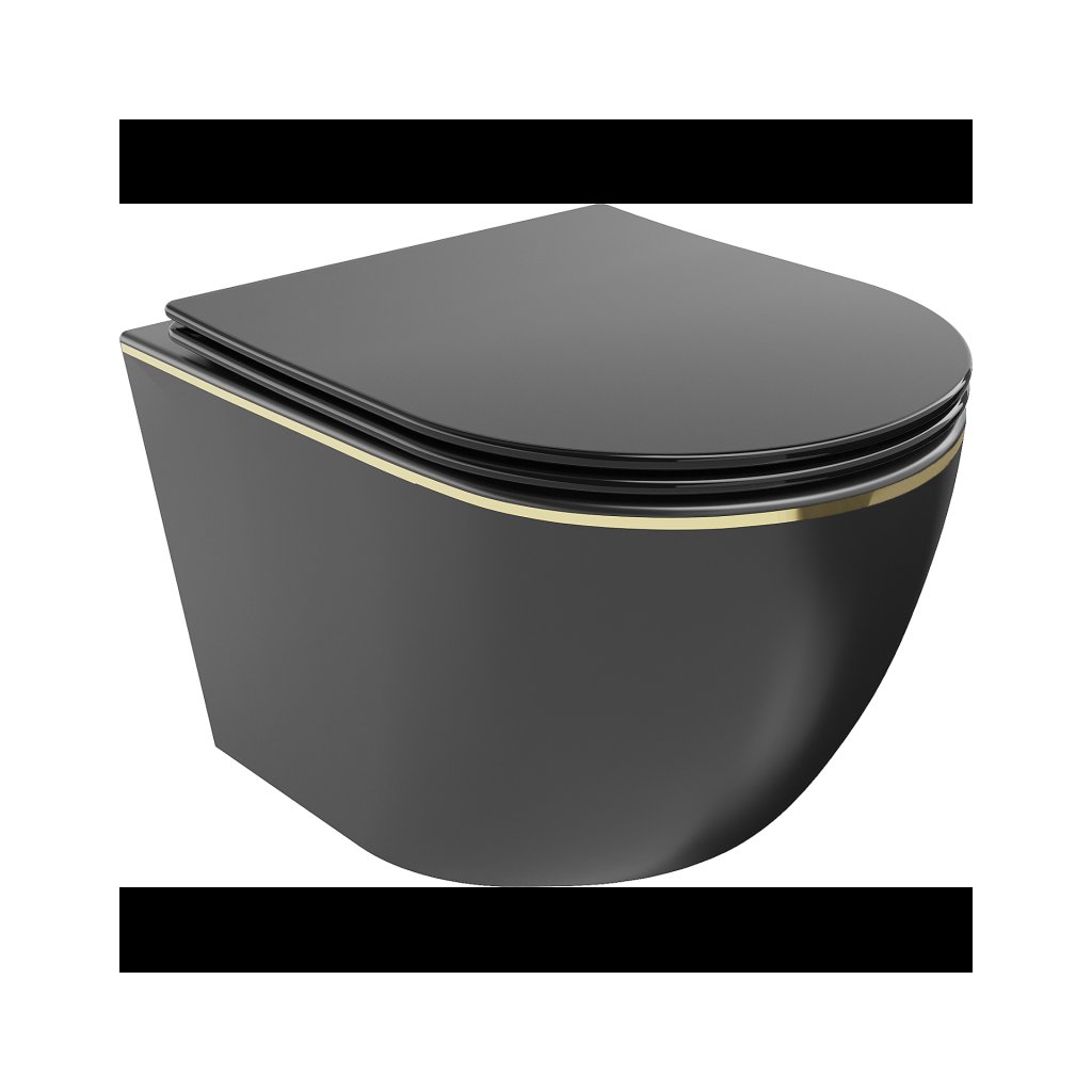 Mexen Lena, závesná toaletná misa 480x360x355 mm s pomaly padajúcim sedátkom, čierna matná - zlatý okraj, 30224075