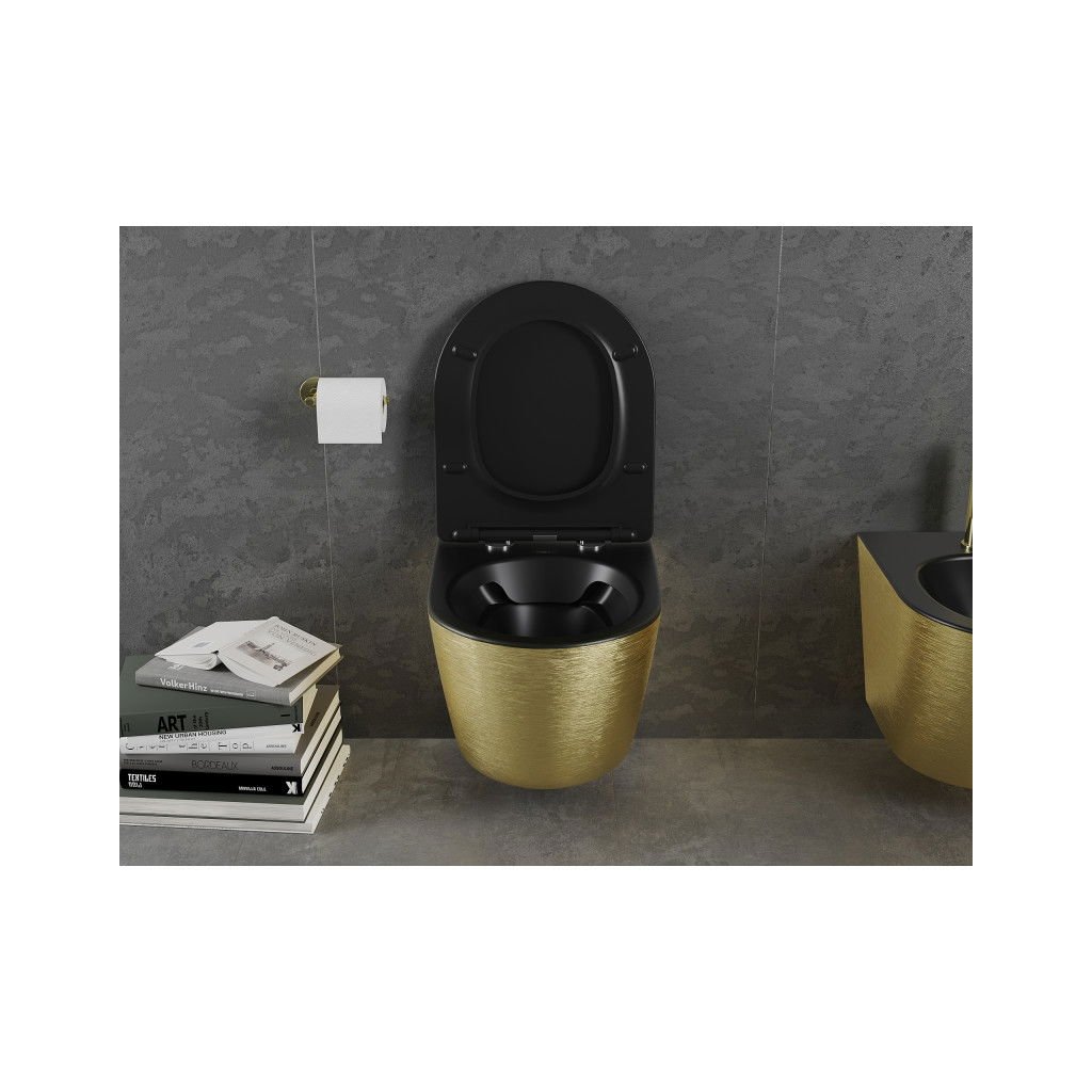 Mexen Lena, závesná toaletná misa 480x360x355 mm s pomaly padajúcim sedátkom, čierna matná - zlatý vzor, 30224077