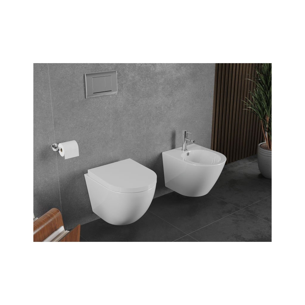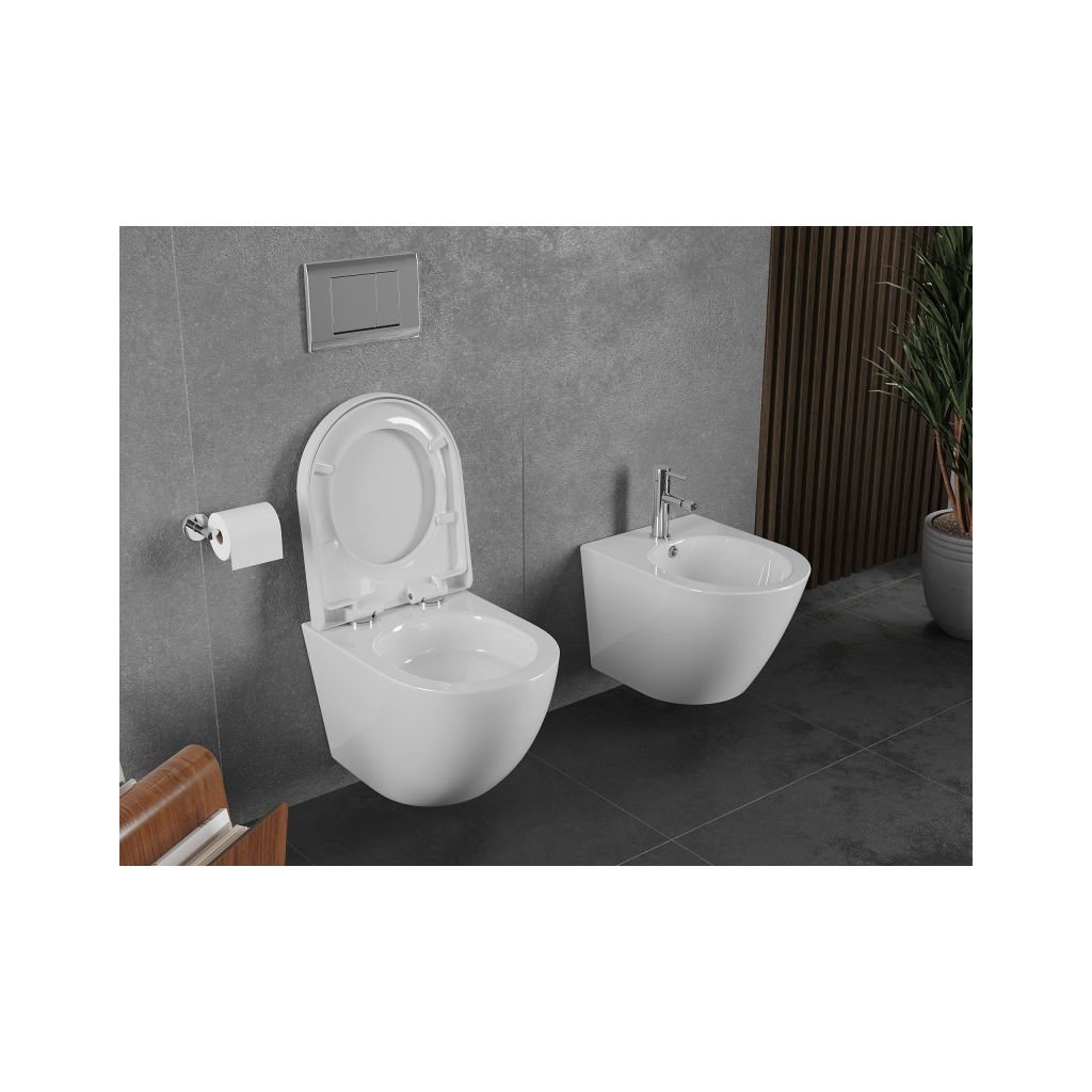 Mexen Lena, závesná WC misa 490x360x340 mm, Rimless Tornádo + toaletné WC sedadlo z duroplastu, biela lesklá, 30220200T