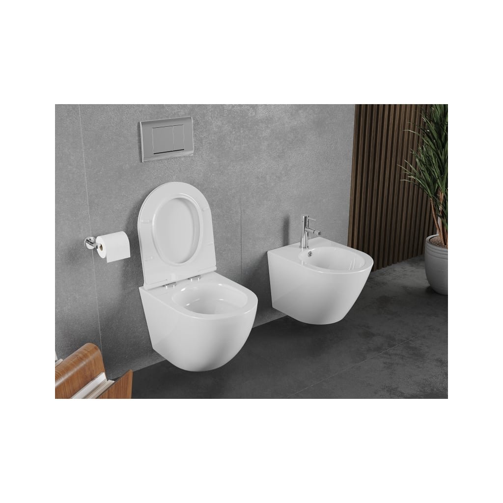 Mexen Lena, závesná WC misa 490x360x340 mm, Rimless Tornádo + toaletné WC sedadlo z duroplastu, biela lesklá, 30220500T
