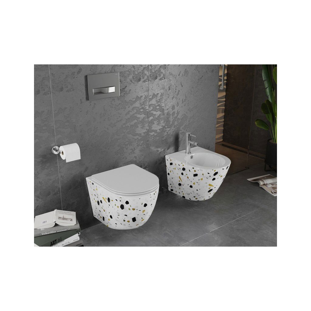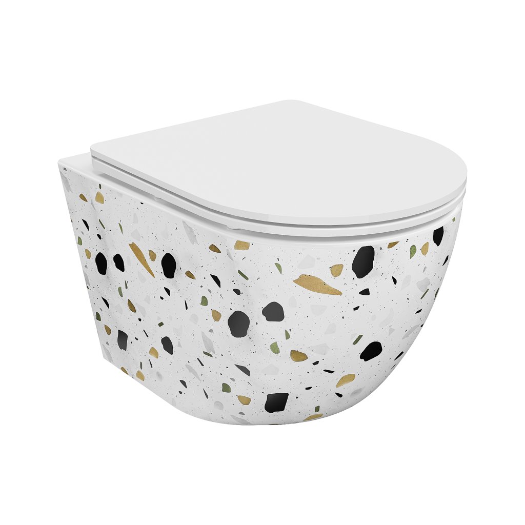 Mexen Lena, závesná WC misa Rimless s duroplastovým sedátkom s pomalým zatváraním, biela-terazzo vzor, 30224096