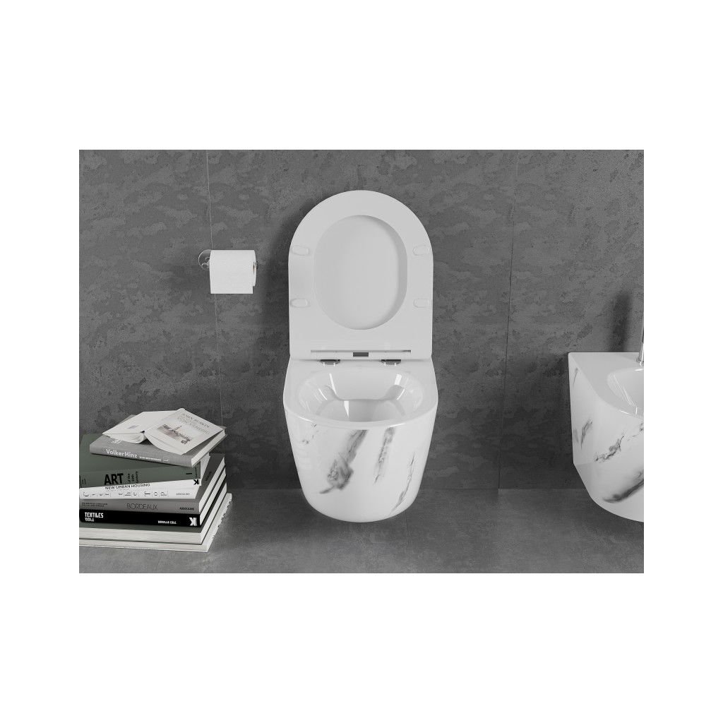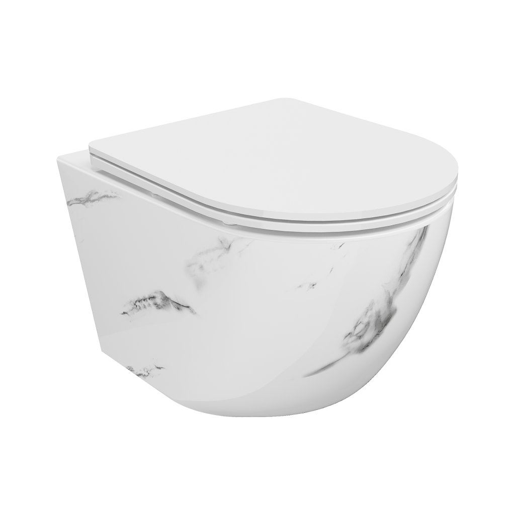 Mexen Lena, závesná WC misa Rimless s duroplastovým sedátkom s pomalým zatváraním, imitácia mramoru-biely kameň, 30224092