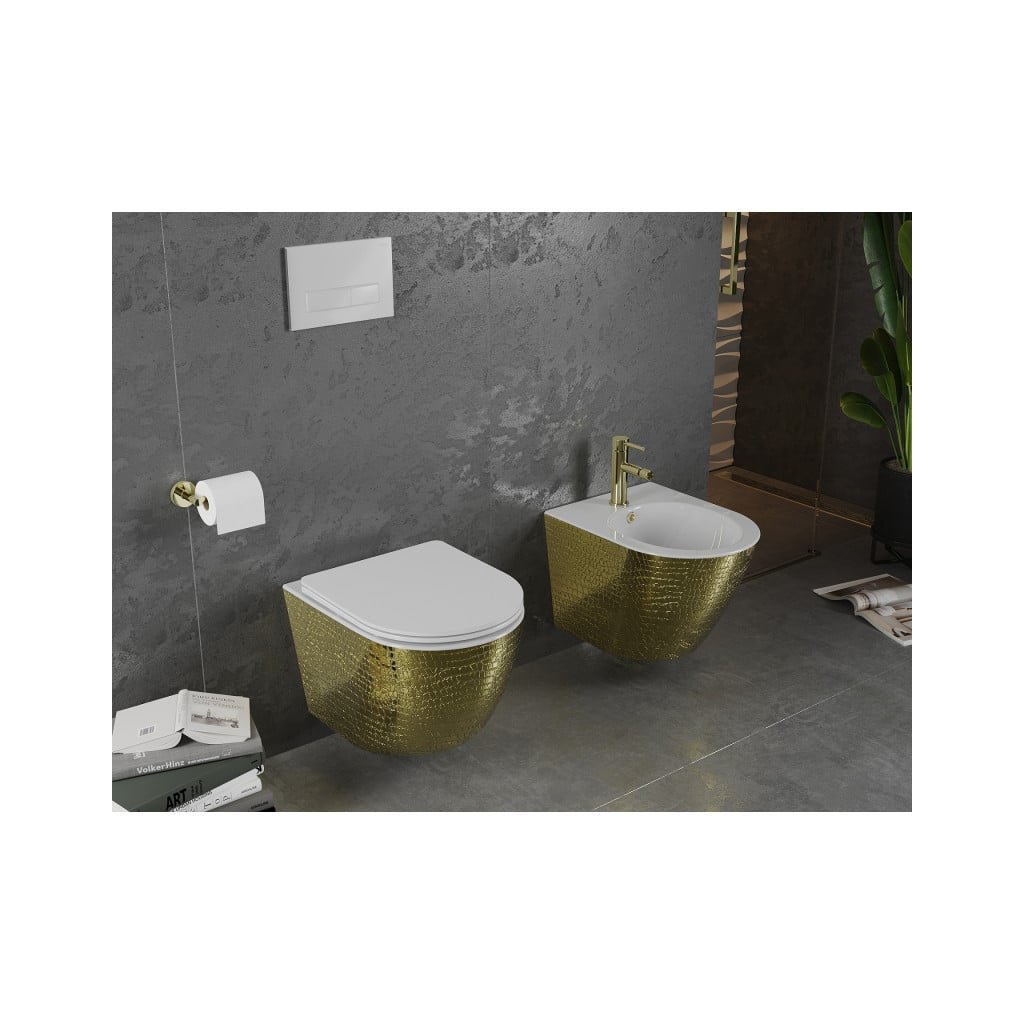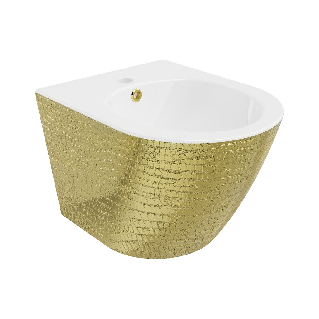 Mexen Lena, závesný bidet 480x370x325 mm, biela - zlatý vzor, 35224808