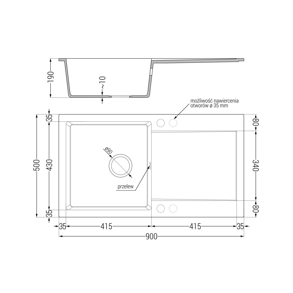 - Odtokový otvor: 3,5 ”;fi = 90 mm