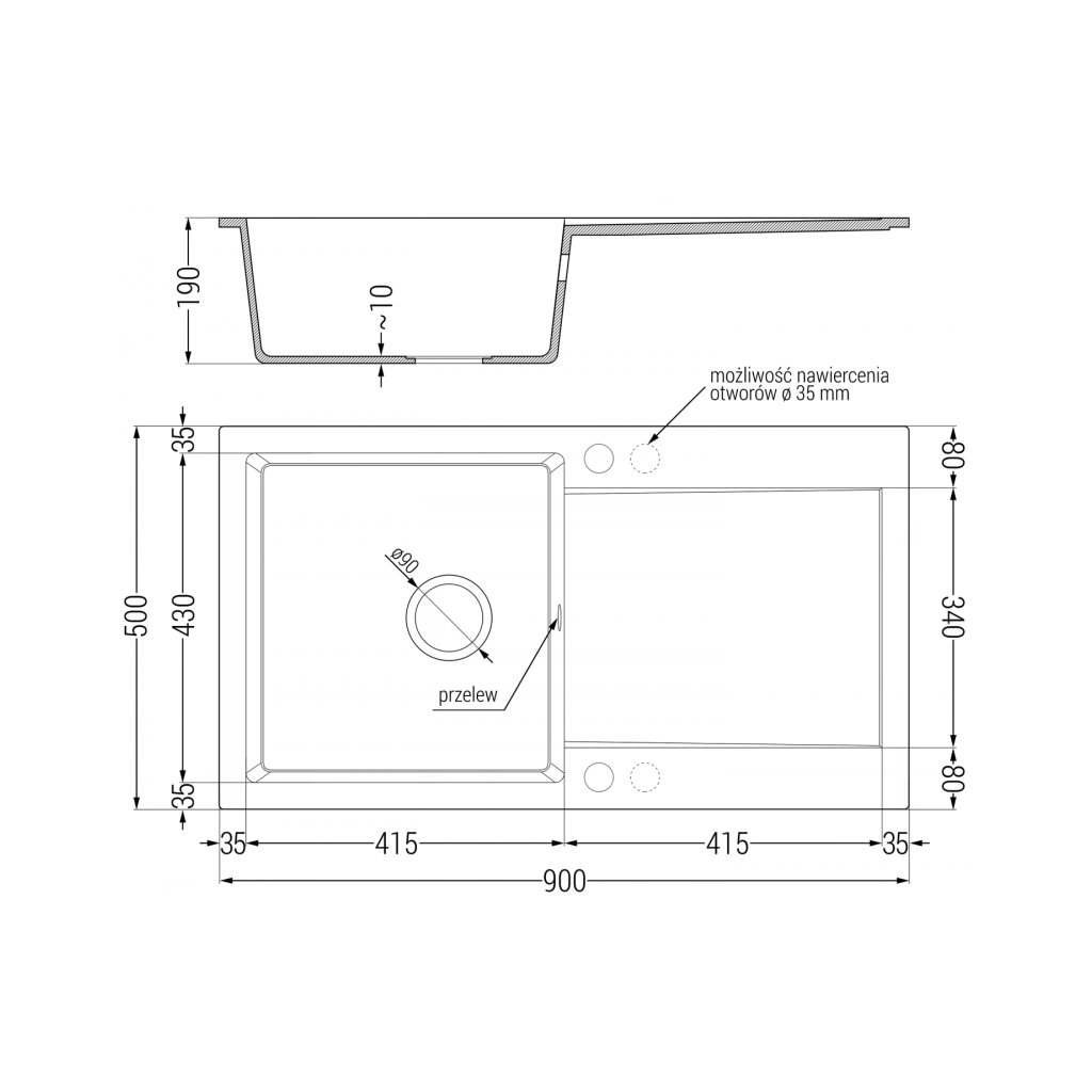 - Priemer odtoku: ø90 mm