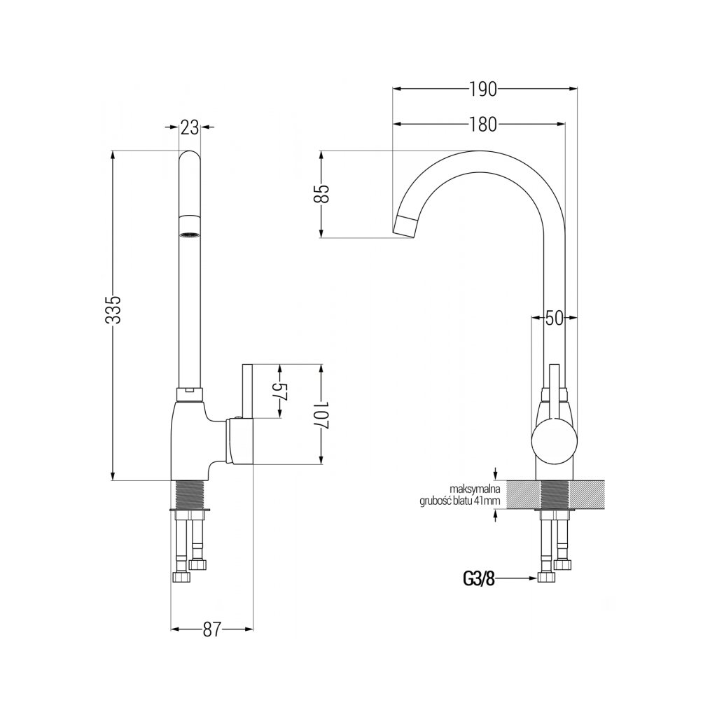 - Rozsah výtoku: 180 mm