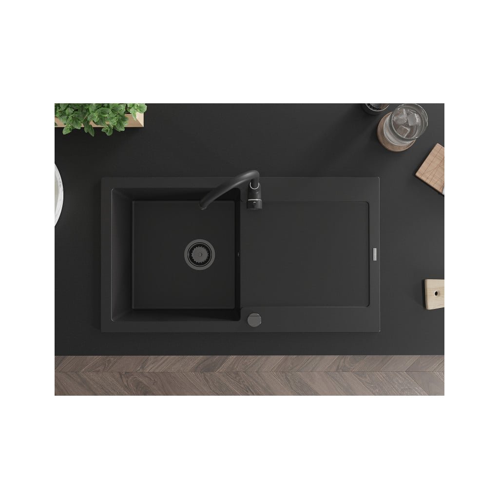 Mexen Leo, drez granitový 900x500x190 mm, 1-komorový, čierna s čiernym sifónom, 6501901010-77-B