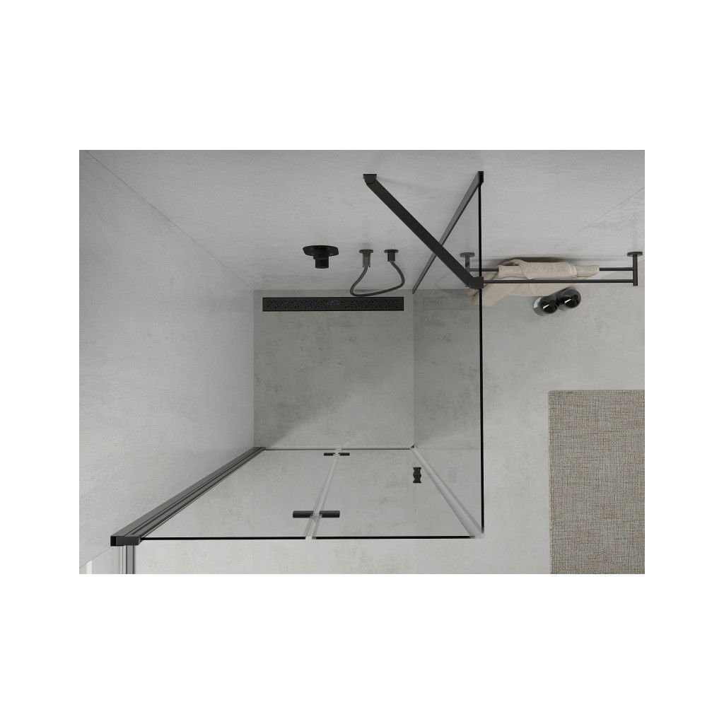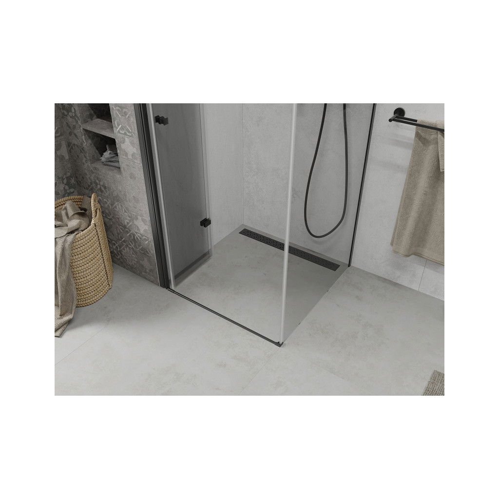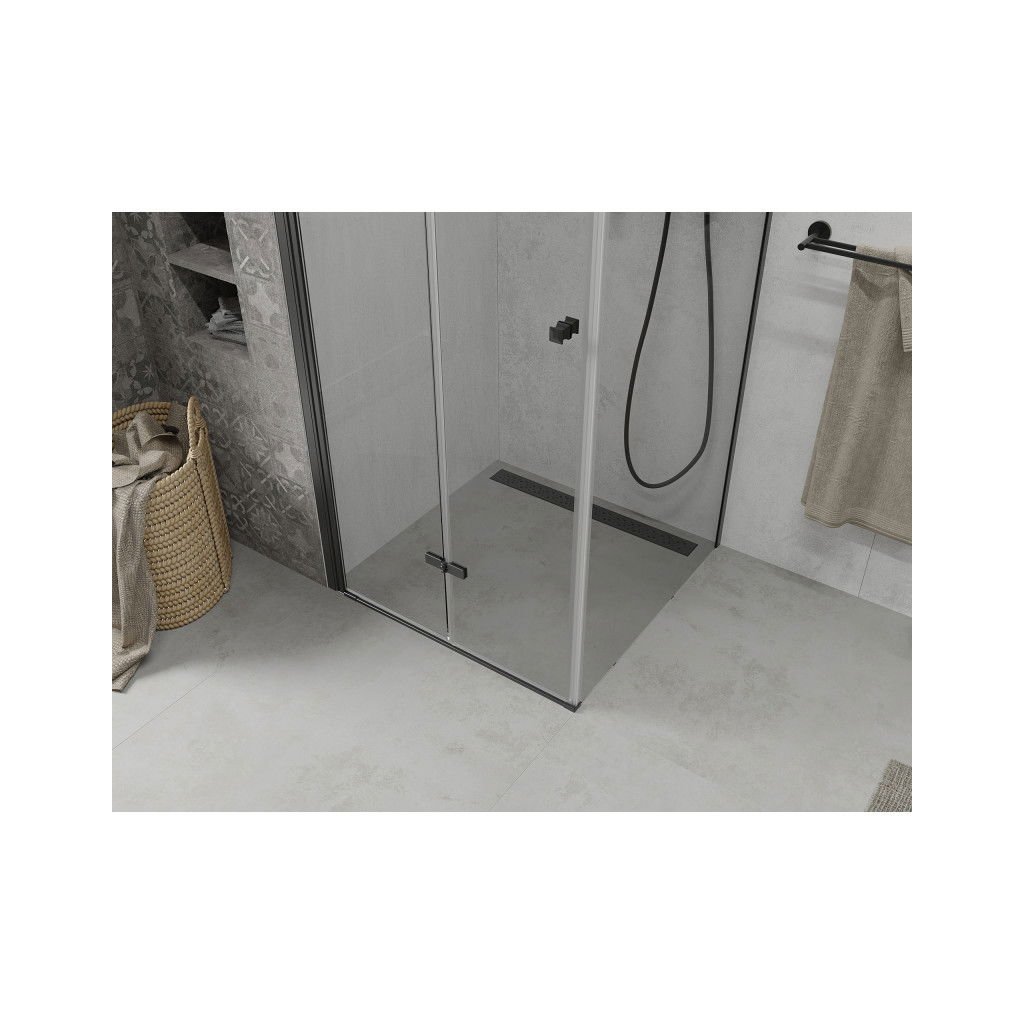 Skvelá voľba do každej kúpeľne. Elegantný sprchový kút je vyrobený z 6 mm hrubého tvrdeného skla v čírom prevedení. Aplikovaná povrchová úprava skla zaisťuje maximálny komfort všetkým užívateľom. Táto technológia zaručuje jedinečné vlastnosti zabraňujúce znečisteniu skla - povrch stačí iba opláchnuť vodou. Kút je uchytený v čiernych hliníkových profiloch a je vybavený tesnením zabraňujúcim úniku vody mimo sprchovací kút. Dvere sprchovacieho kúta sú skladacie (dve sklá spojené kvalitnými pántmi s možnosťou zloženia dovnútra aj von). Na otváranie slúži decentná kovová rukoväť.