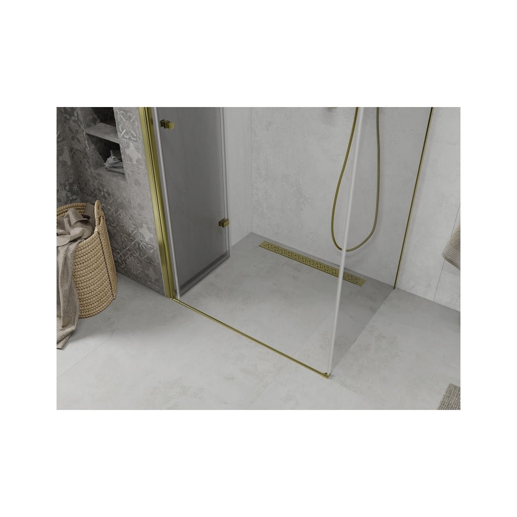 Mexen Lima, sprchovací kút 80 (dvere) x 90 (stena) cm, 6mm číre sklo, zlatý profil, 856-080-090-50-00