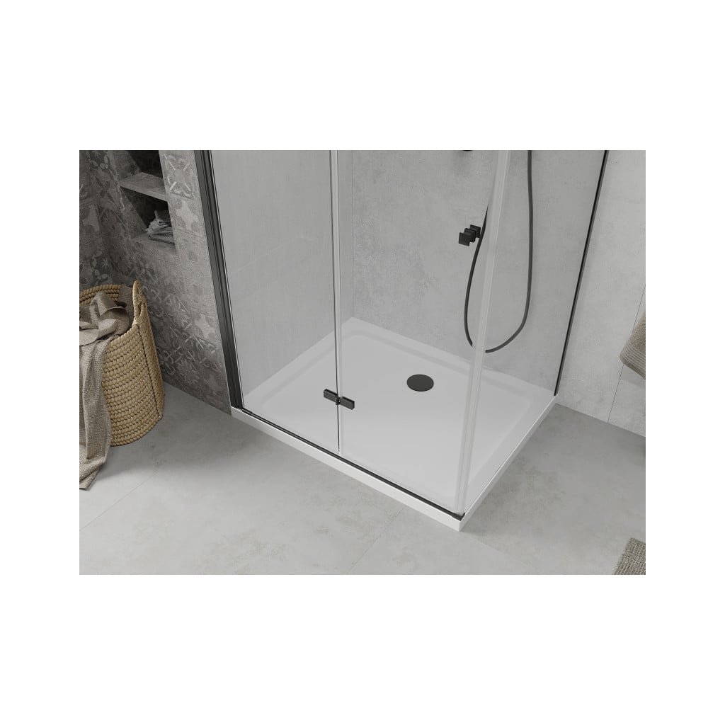 Mexen Lima, sprchovací kút so skladacími dverami 70 (dvere) x 110 (stena) cm, 6mm číre sklo, čierny profil + slim sprchová vanička biela s čiernym sifónom, 856-070-110-70-00-4010B