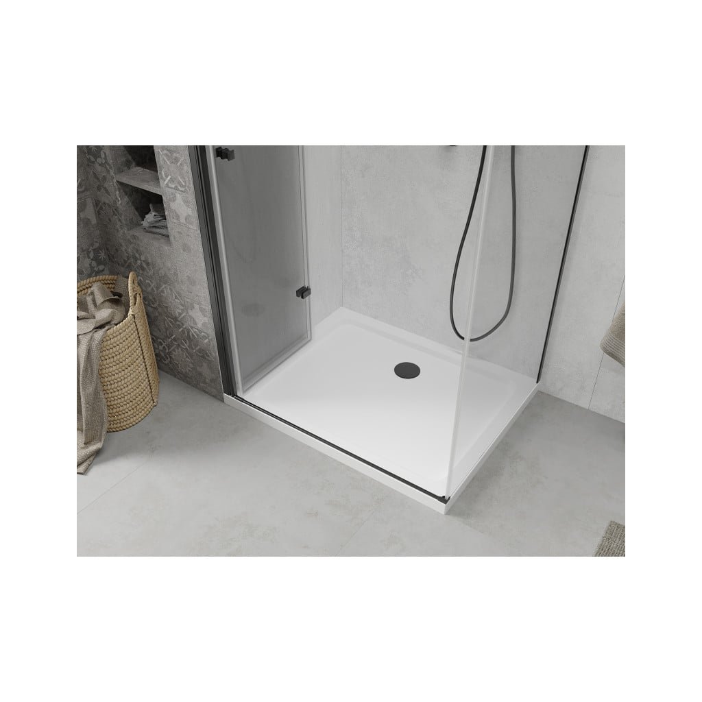 Mexen Lima, sprchovací kút so skladacími dverami 80 (dvere) x 70 (stena) cm, 6mm číre sklo, čierny profil + slim sprchová vanička biela s čiernym sifónom, 856-080-070-70-00-4010B