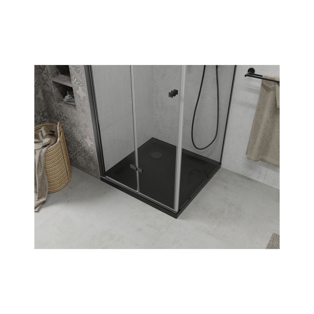 Mexen Lima, sprchový kút 90 (dvere) x 90 (stena) cm, 6mm číre sklo, čierny profil + SLIM čierna sprchová vanička 5cm s čiernym sifónom, 856-090-090-70-00-4070B