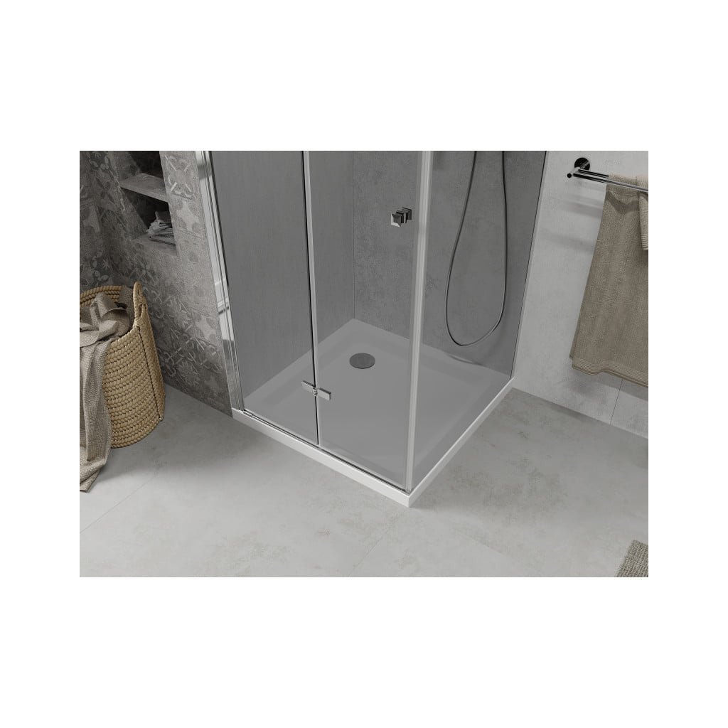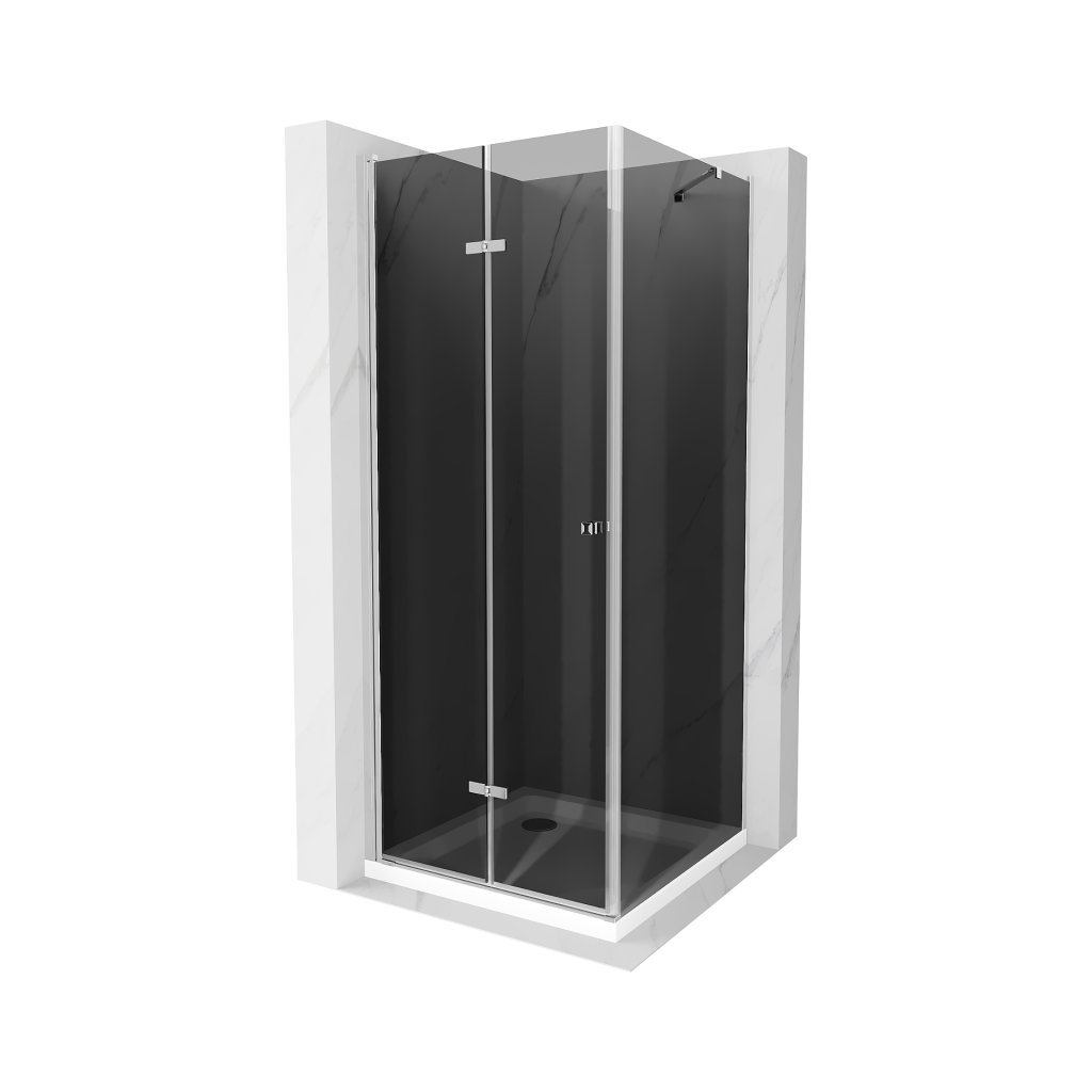 Mexen Lima, sprchový kút 90 (dvere) x 90 (stena) cm, 6mm šedé sklo, chrómový profil + SLIM sprchová vanička 5cm s chrómovým sifónom, 856-090-090-01-40-4010