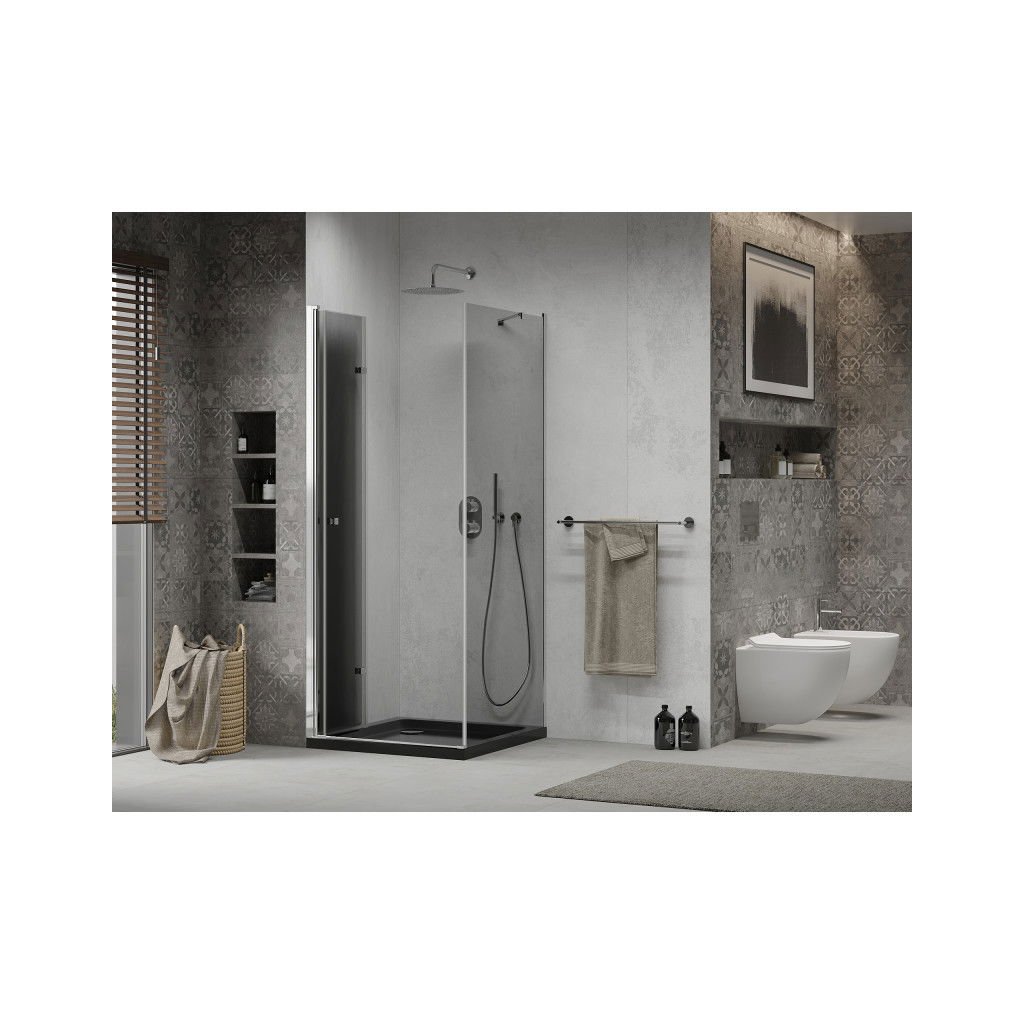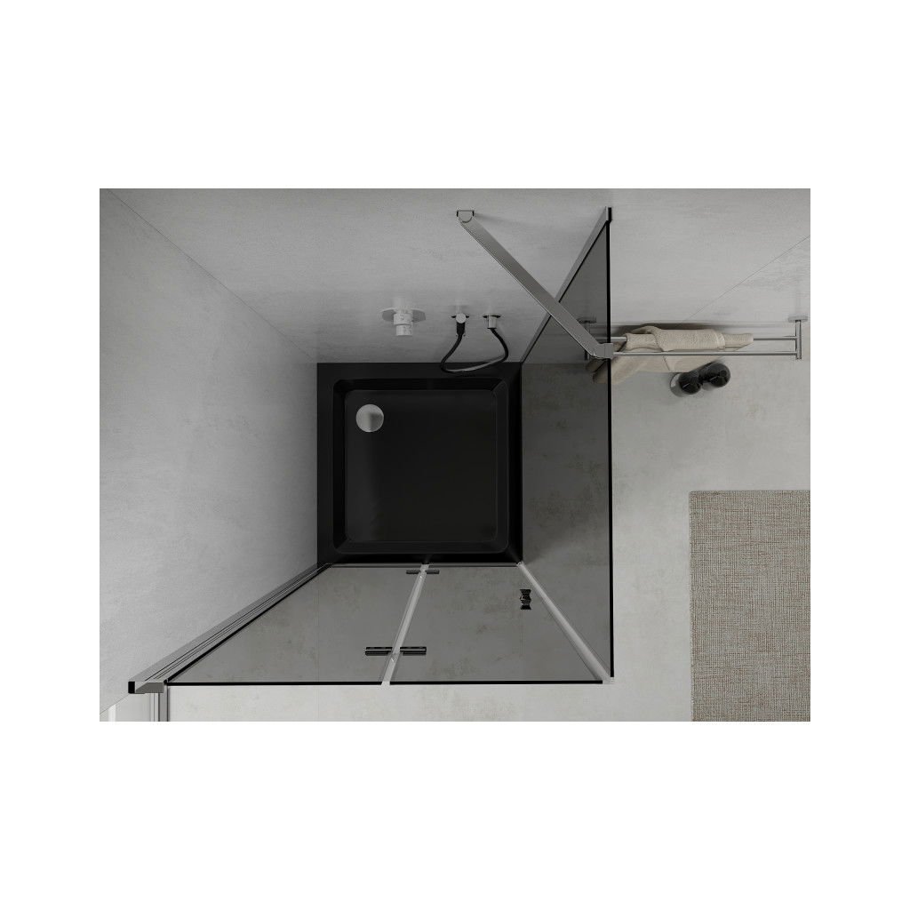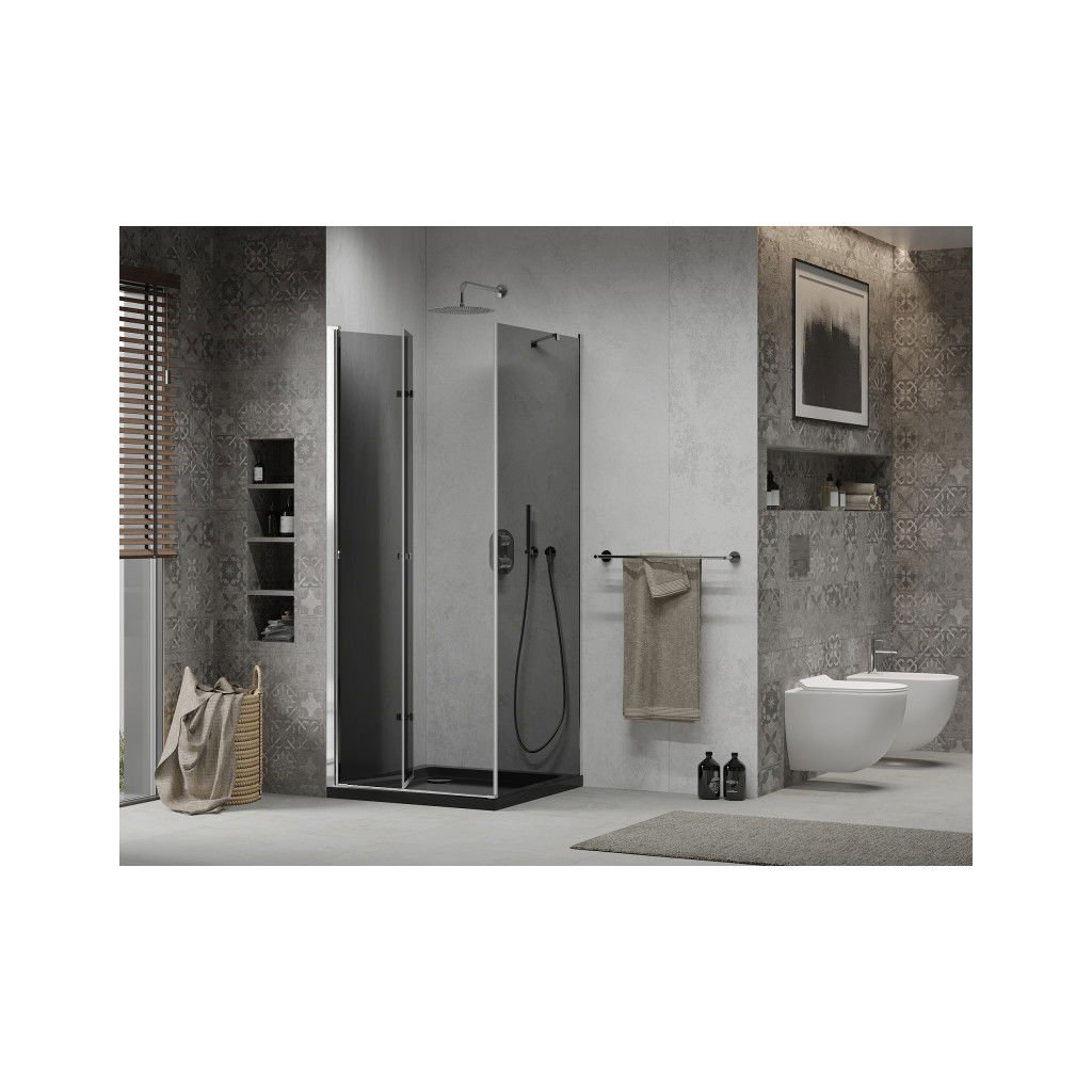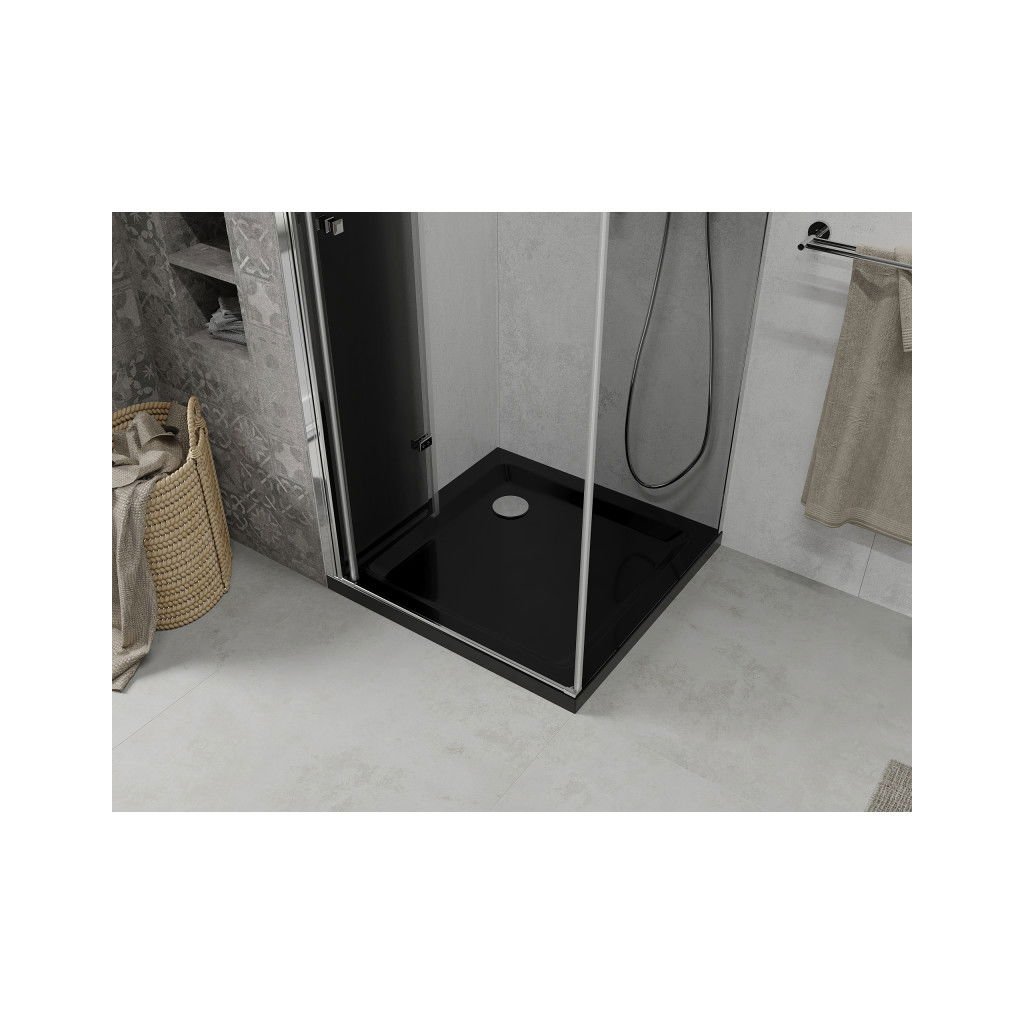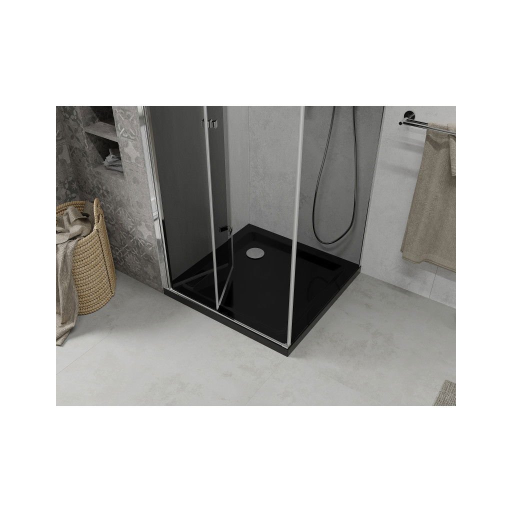 Mexen Lima, sprchový kút so skladacími dverami 80 (dvere) x 80 (stena) cm, 6mm šedé sklo, chrómový profil + slim sprchová vanička čierna + chrómový sifón, 856-080-080-01-40-4070