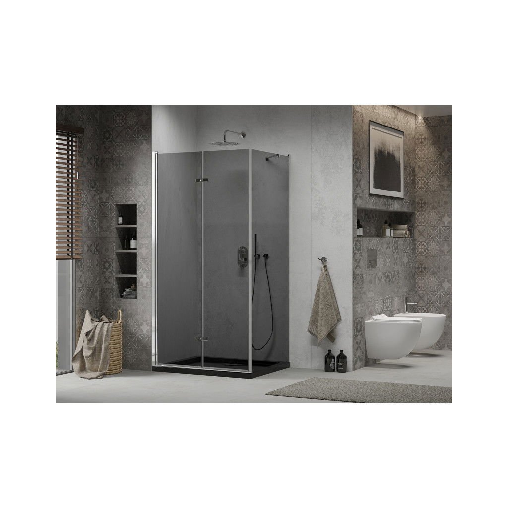 Mexen Lima, sprchový kút so skladacími dverami 90 (dvere) x 100 (stena) cm, 6mm šedé sklo, chrómový profil + slim sprchová vanička čierna + chrómový sifón, 856-090-100-01-40-4070
